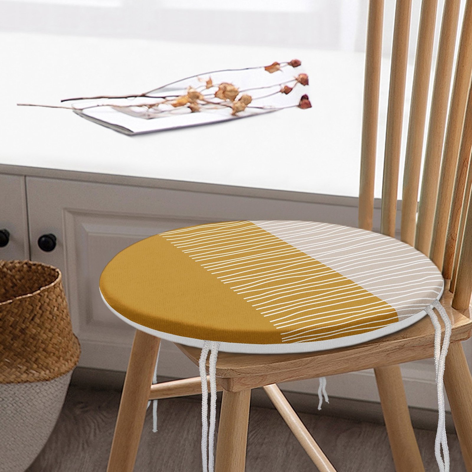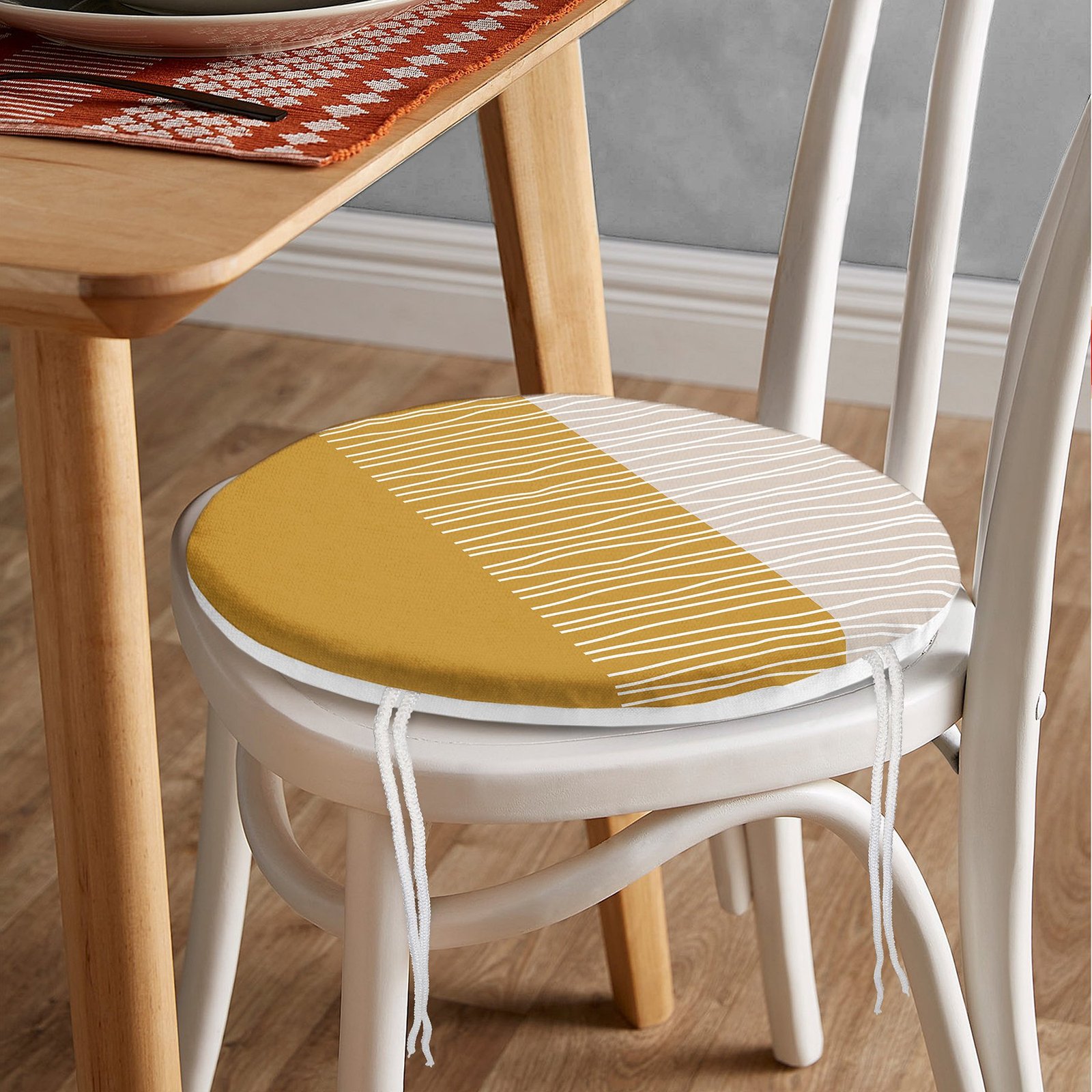 Çizgili Retro Tasarımlı Dijital Baskılı Yuvarlak Fermuarlı Sandalye Minderi