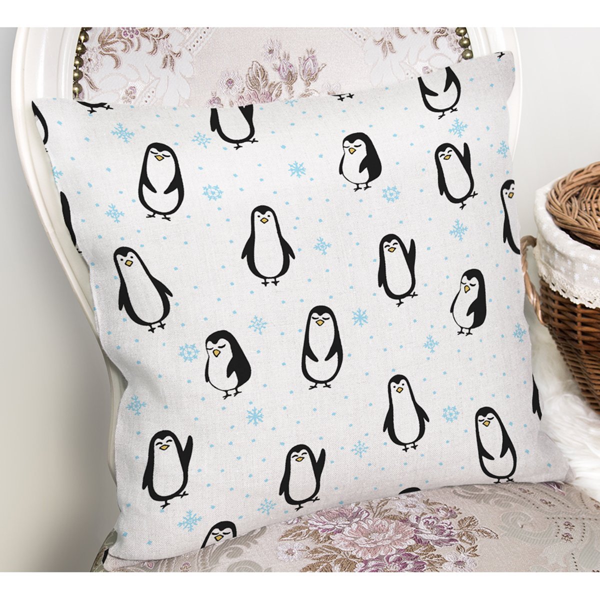 Çocuk Odası Sevimli Penguen Temalı Dijital Baskılı Özel Tasarım Modern Yastık Kırlent Kılıfı