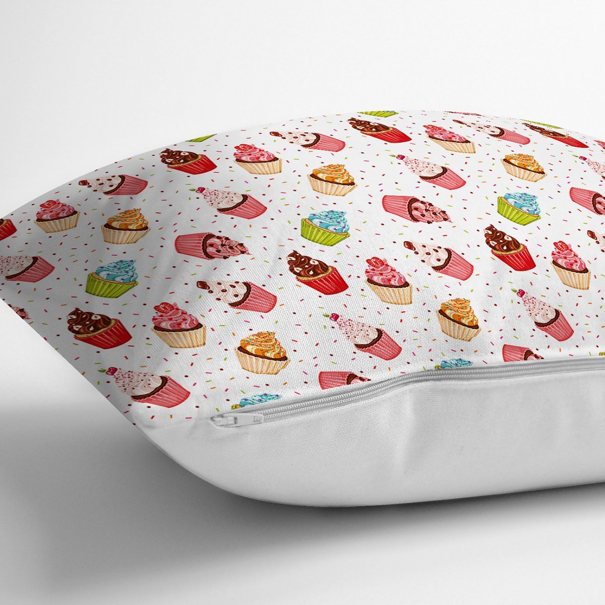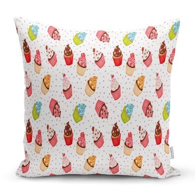 Cupcake Desenli Özel Tasarım Dijital Baskılı Modern Yastık Kırlent Kılıfı