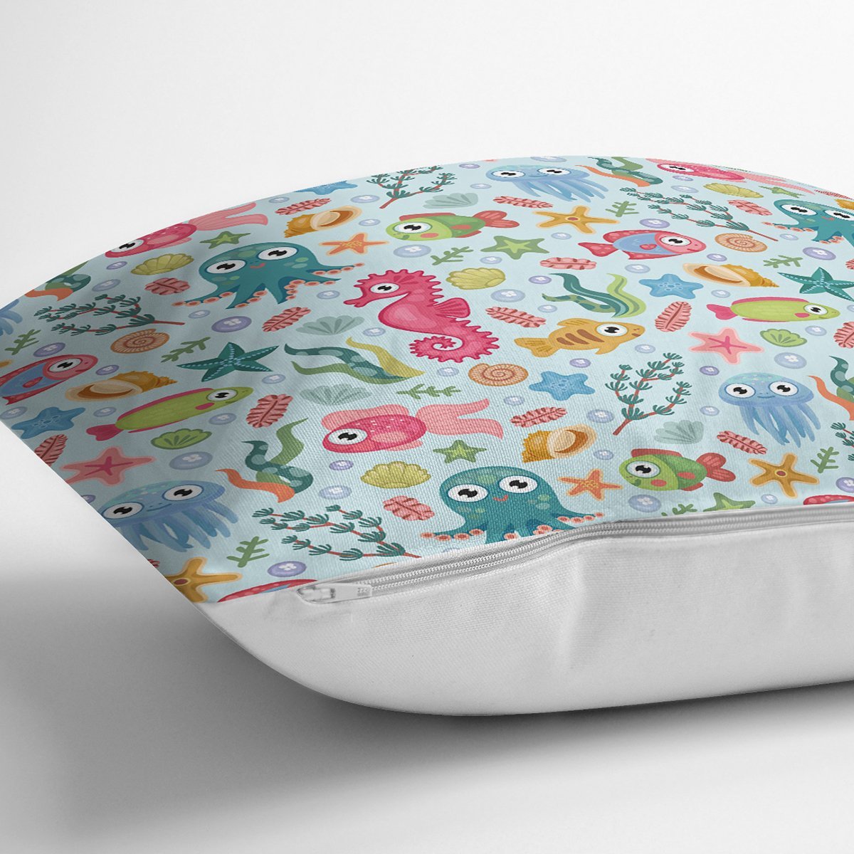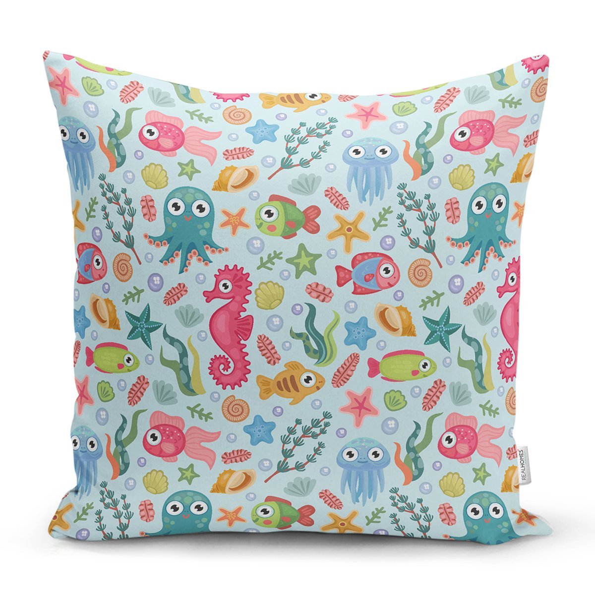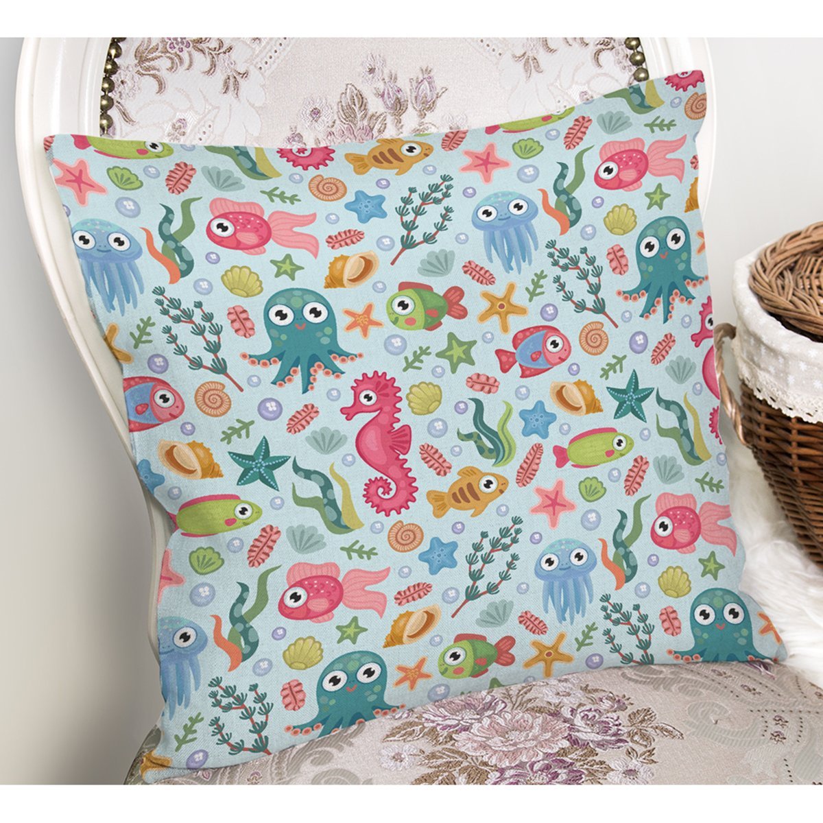 Deniz Hayvanları Temalı Dijital Baskılı Özel Tasarım Modern Yastık Kırlent Kılıfı