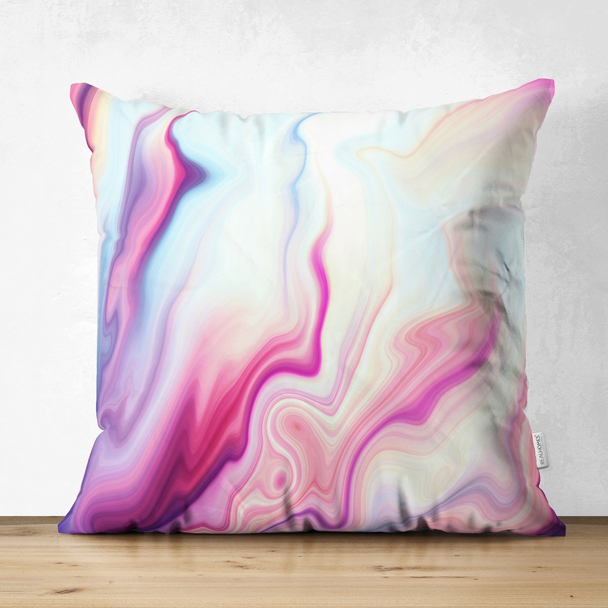 Ebru Motifli Dijital Baskılı Modern Süet Yastık Kırlent Kılıfı