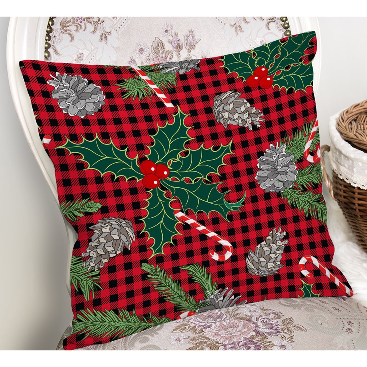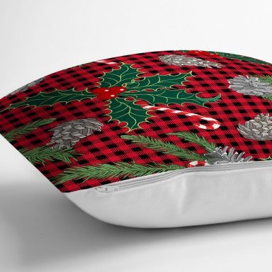 Ekose Zeminli Yılbaşı Temalı Dijital Baskılı Modern Yastık Kırlent Kılıfı