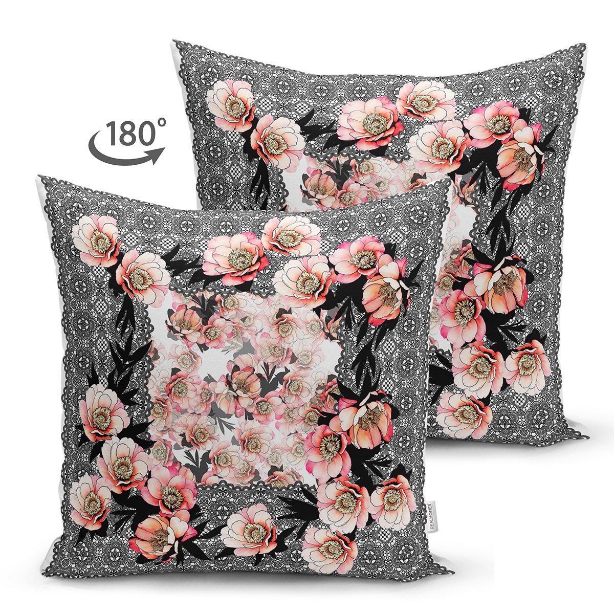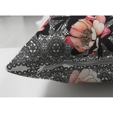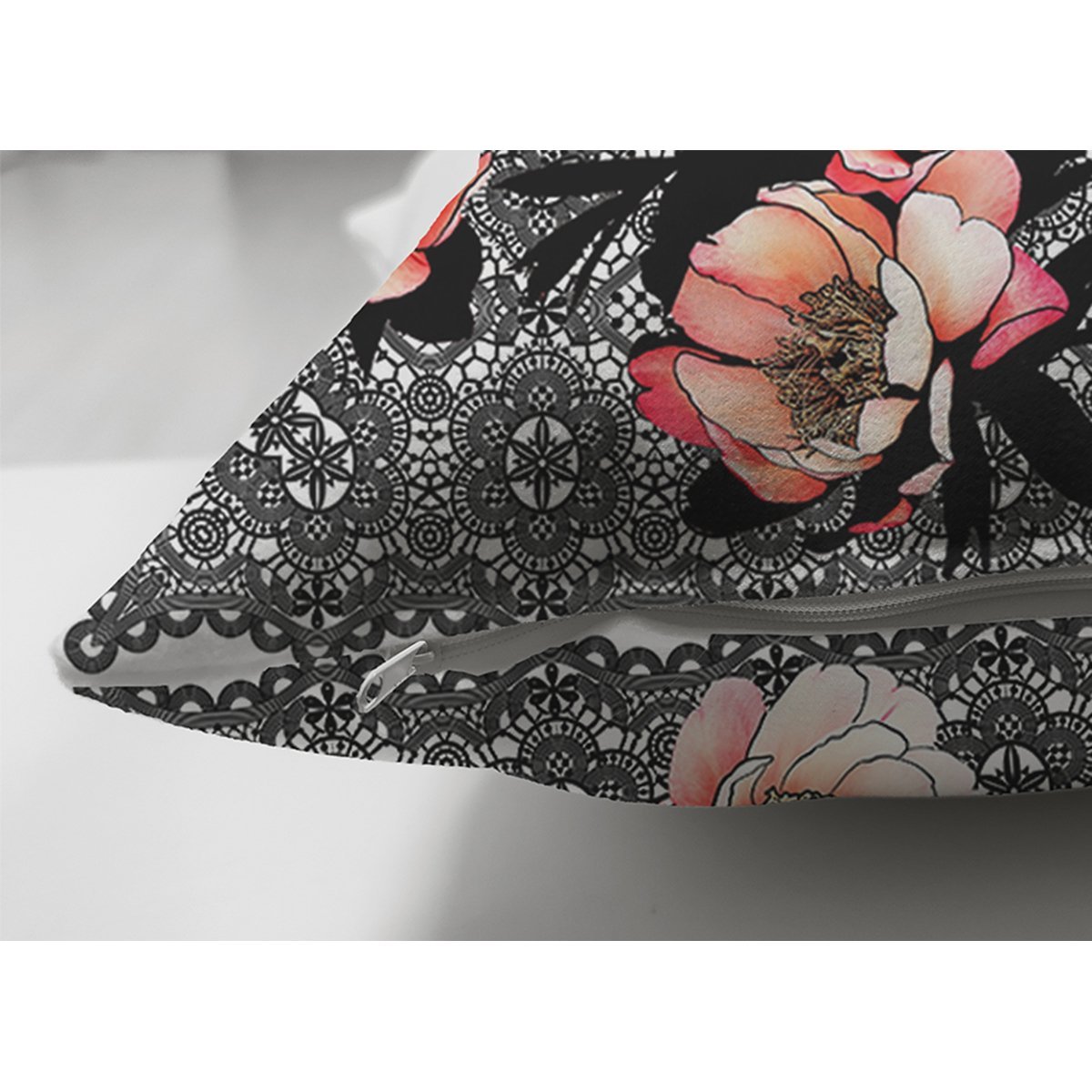 Elişi Dantel Ve Çiçek Motifli Özel Tasarım Dijital Baskılı Modern Süet Yastık Kırlent Kılıfı