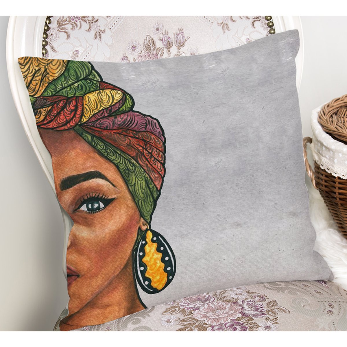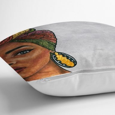Etnik Afrika Kadın Tasarımlı Dijital Baskılı Yastık Kırlent Kılıfı