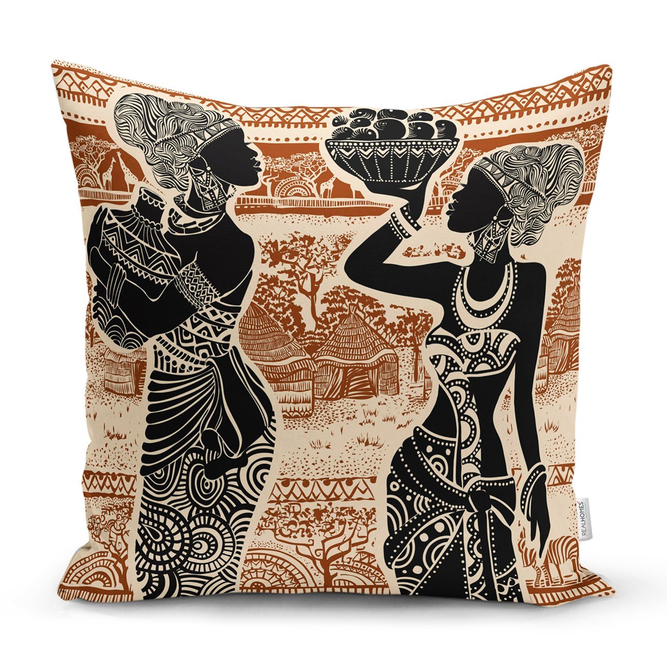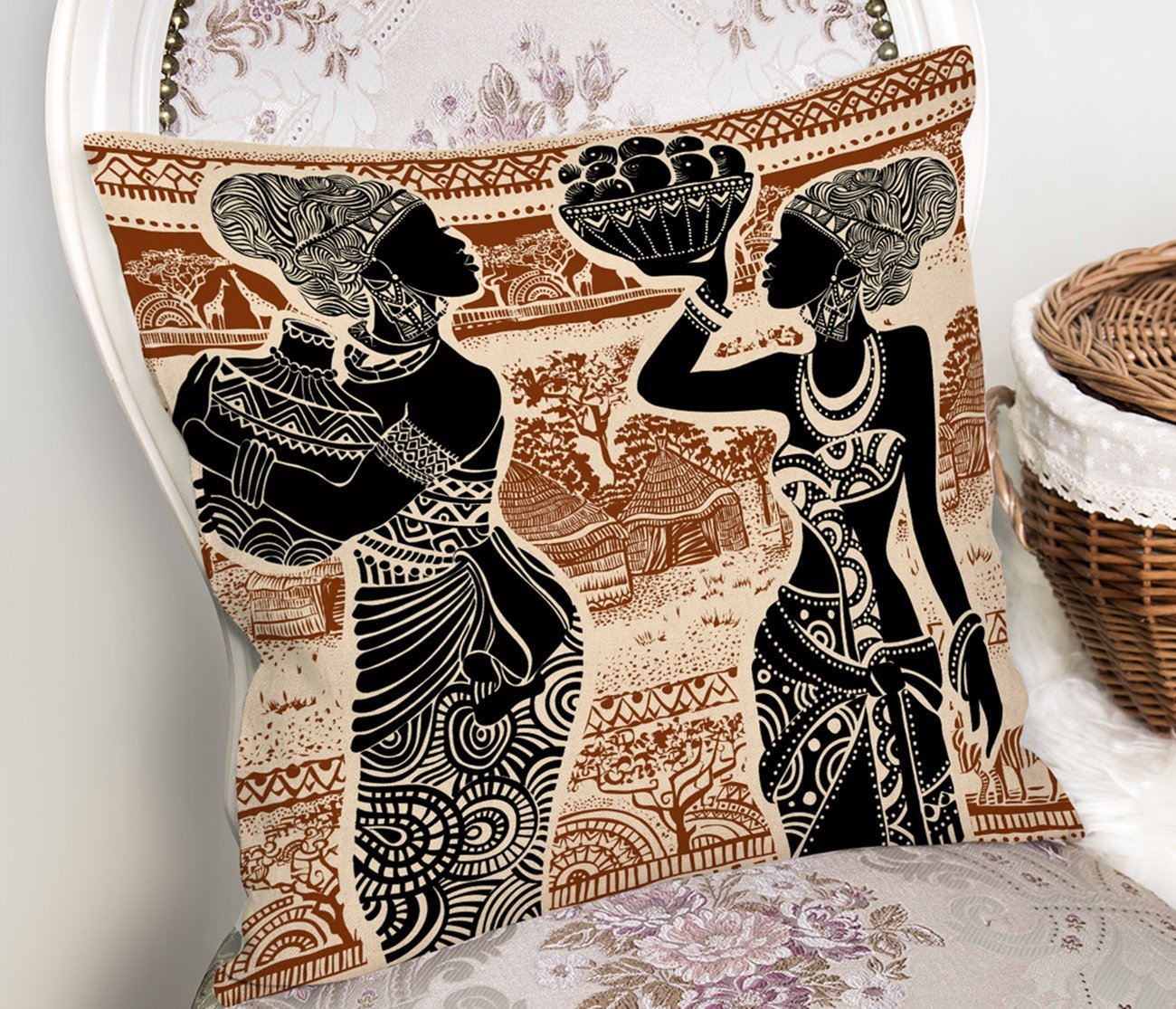 Etnik Desen Zeminli Afrika Kadın Motifli Dekoratif Yastık Kılıfı
