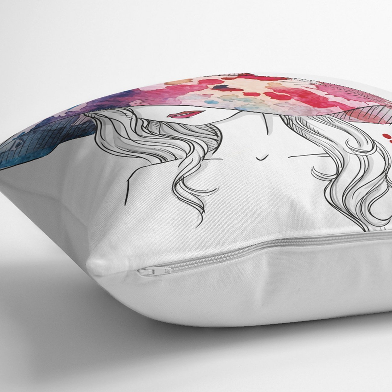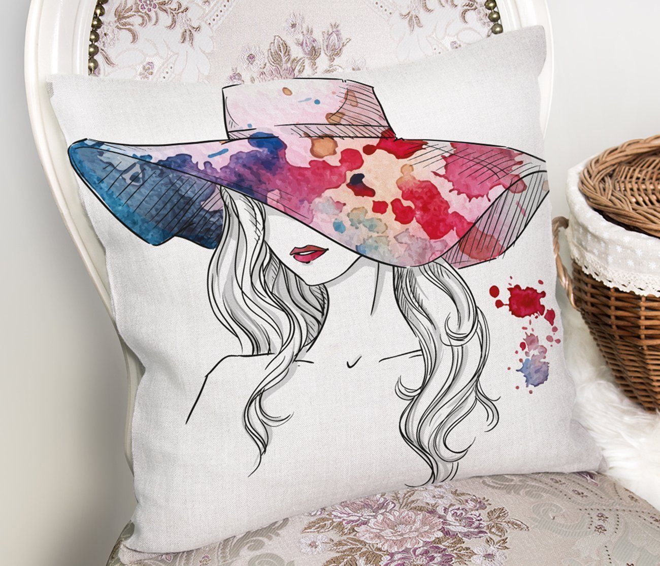 Fashion Girl Şapka Özel Tasarım Dijital Baskılı Kırlent Kılıfı