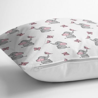 Fil Ve Kelebek Desenli Dijital Baskılı Özel Tasarım Modern Yastık Kırlent Kılıfı
