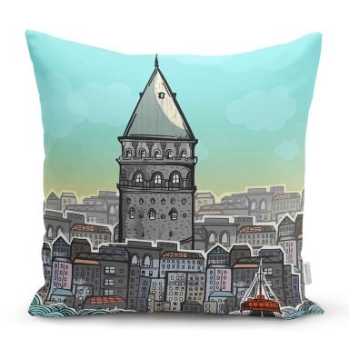 Galata Kulesi Dijital Baskılı Dekoratif Yastık Kırlent Kılıfı – K19