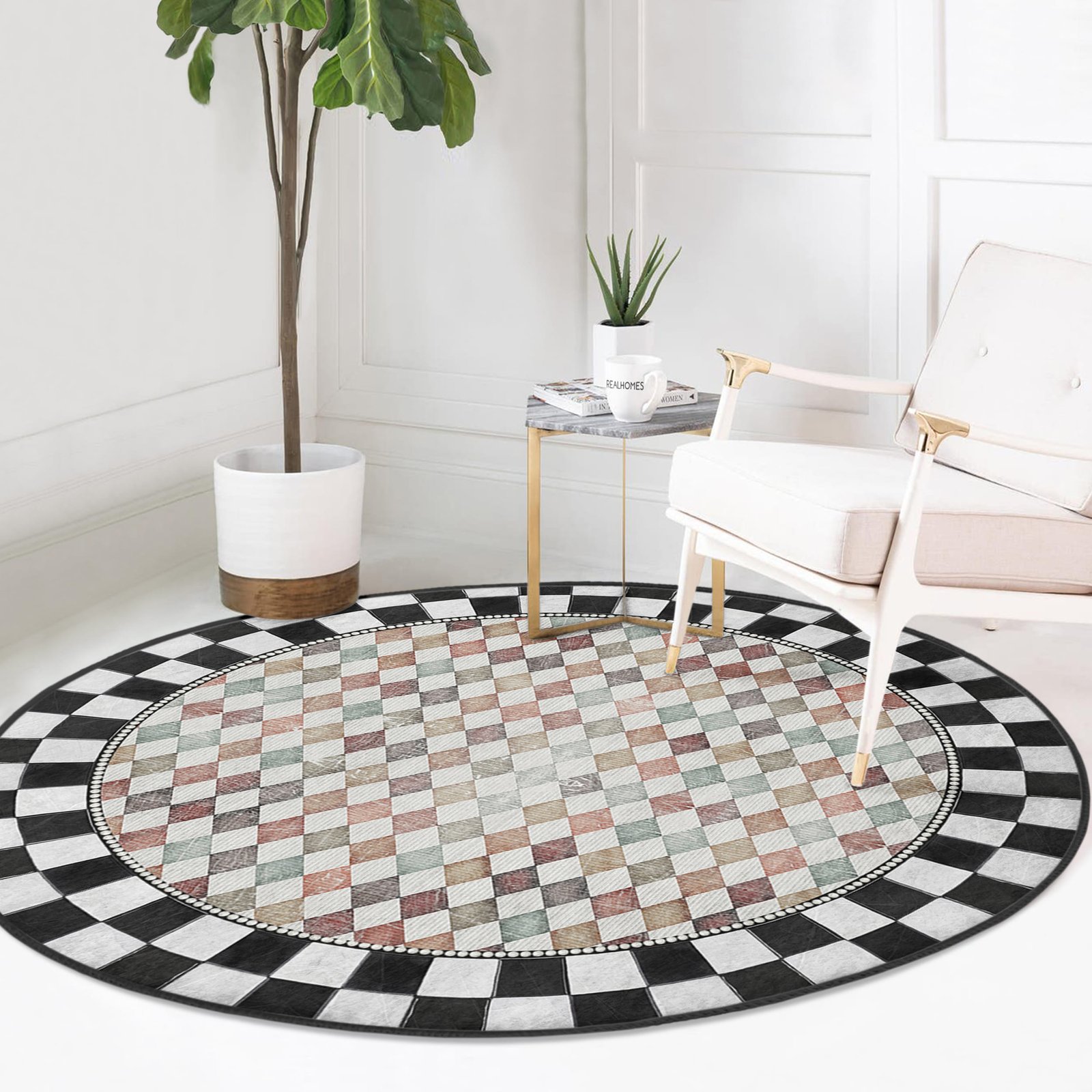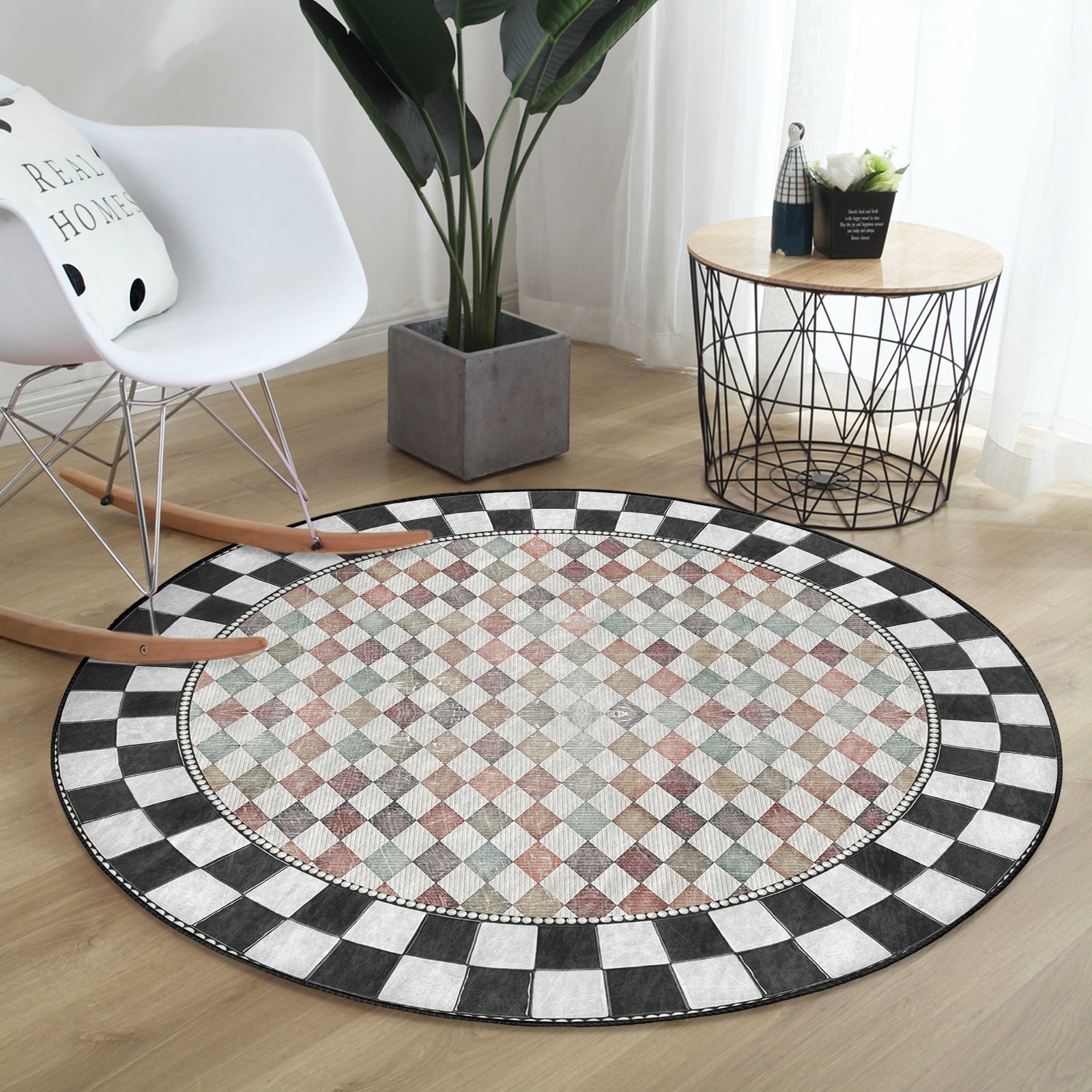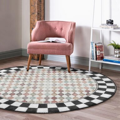 Geometrik Desenli Yuvarlak Salon Halısı – Modern ve Şık Tasarım, Yıkanabilir Kaymaz Tabanlı