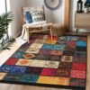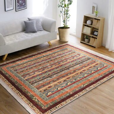 Geometrik etnik kilim motifleriyle tasarlanan bu lacivert zeminli dikdörtgen halı; kırmızı, turuncu ve krem tonlarının enerjik uyumuyla odaya sıcak, hareketli ve modern bir atmosfer katar. Desenli kompozisyondaki baklava ve patchwork görünümlü formlar, salon, oturma odası ve yatak odasında odak noktası oluştururken çocuk ve bebek odalarında da neşeli bir stil sunar. Halı dijital baskıdır, yıkanabilir yapısıyla pratik temizlik sağlar ve kaymaz tabanı sayesinde günlük kullanımda güvenli bir konfor hissi verir.