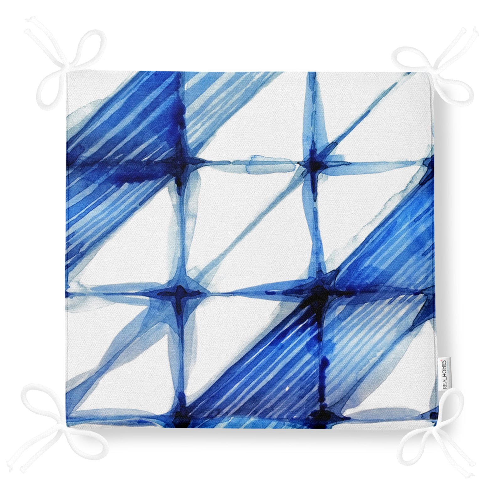Geometrik Sulu Boyalı Dijital Baskılı Fermuarlı Sandalye Minderi