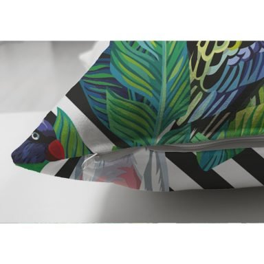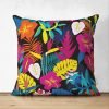 Geometrik Zeminde Tropikal Desenli Dijital Baskılı Modern Süet Yastık Kırlent Kılıfı