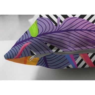 Geometrik Zeminde Tropikal Yapraklar Dijital Baskılı Modern Süet Yastık Kırlent Kılıfı