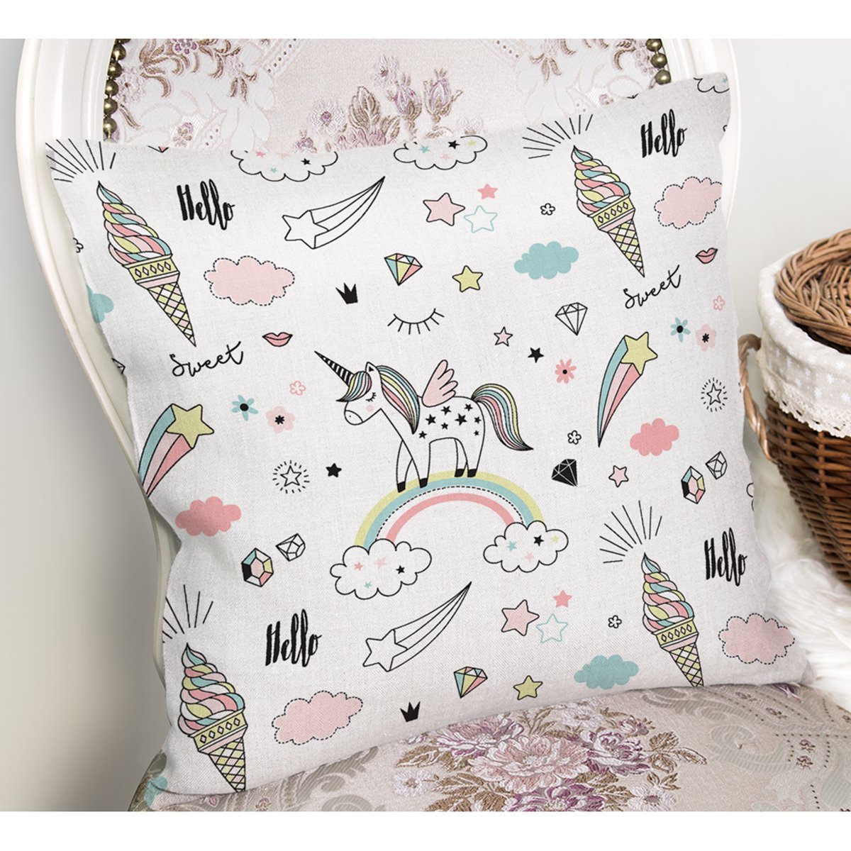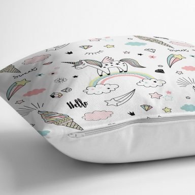 Gökkuşağı Bulut Ve Unicorn Desenli Dijital Baskılı Özel Tasarım Modern Yastık Kırlent Kılıfı