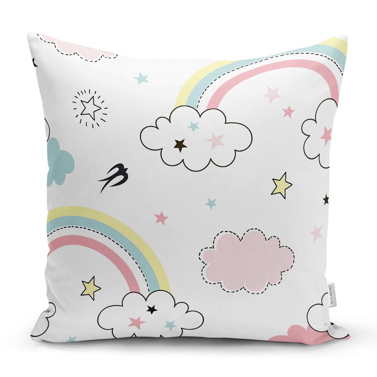 Gökkuşağı Ve Bulut Temalı Dijital Baskılı Özel Tasarım Modern Yastık Kırlent Kılıfı