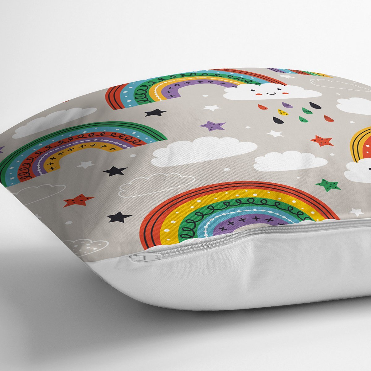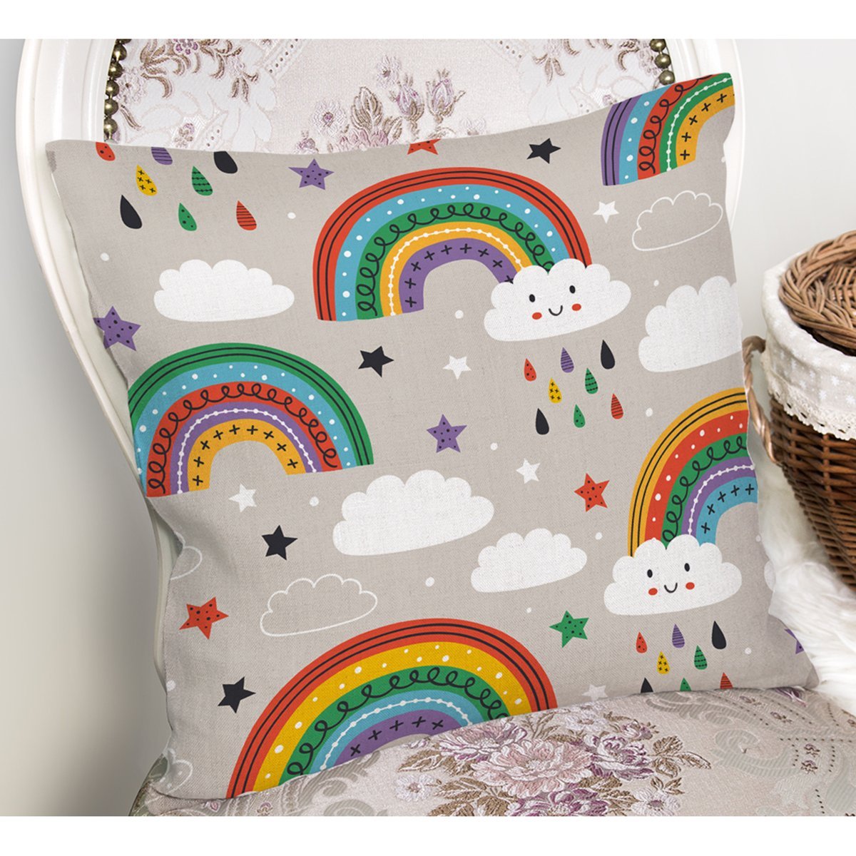 Gökkuşağı Ve Bulut Temalı Dijital Baskılı Özel Tasarım Modern Yastık Kırlent Kılıfı