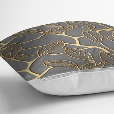 Gold Detaylı Yaprak Motifli Özel Tasarım Dekoratif Yastık Kırlent Kılıfı