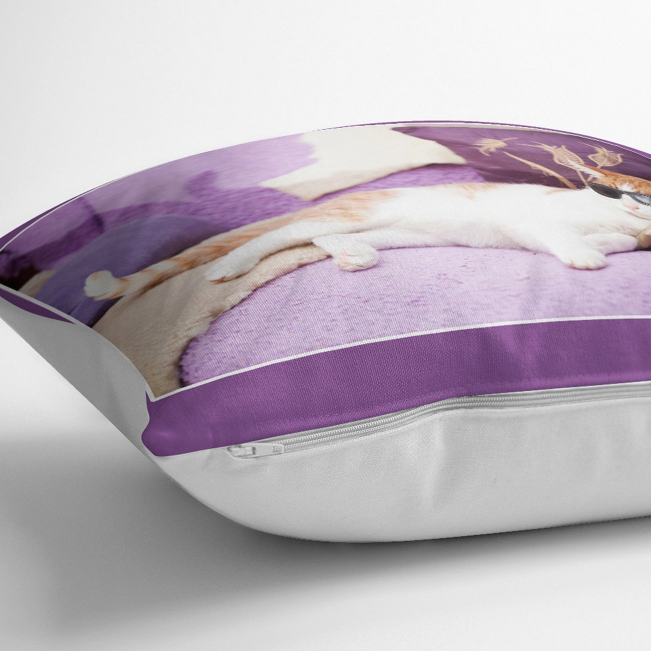 Gözlüklü Kedi Desenli Dijital Baskılı Modern Hayvan Yer Minderi