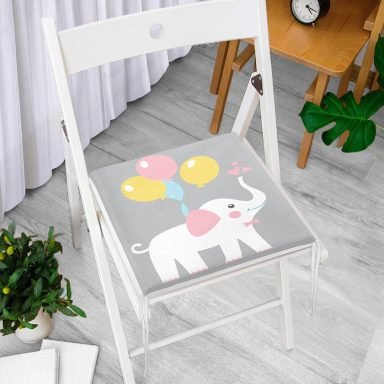 Gri Zeminde Fil Desenli Çocuk Odası Fermuarlı Sandalye Minderi