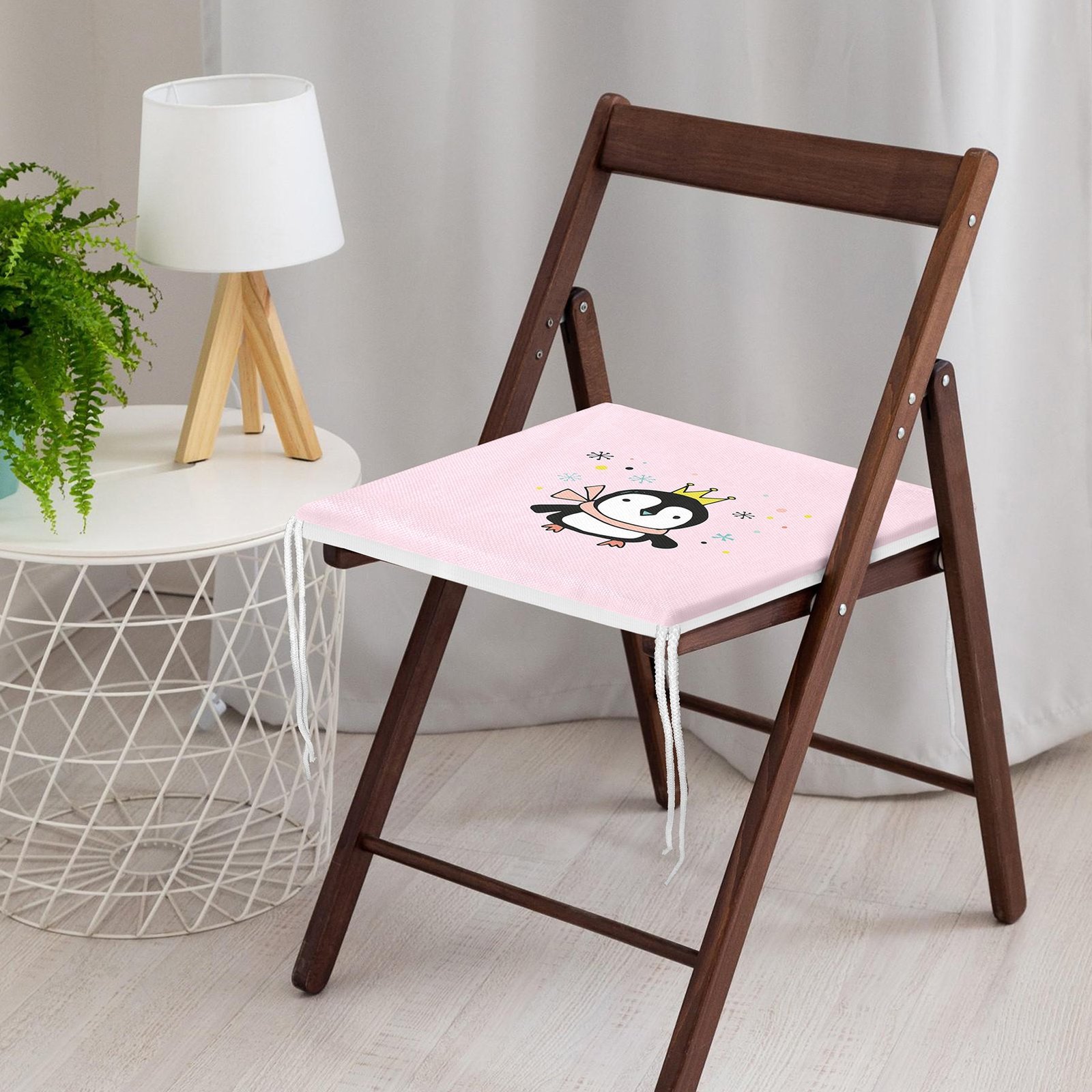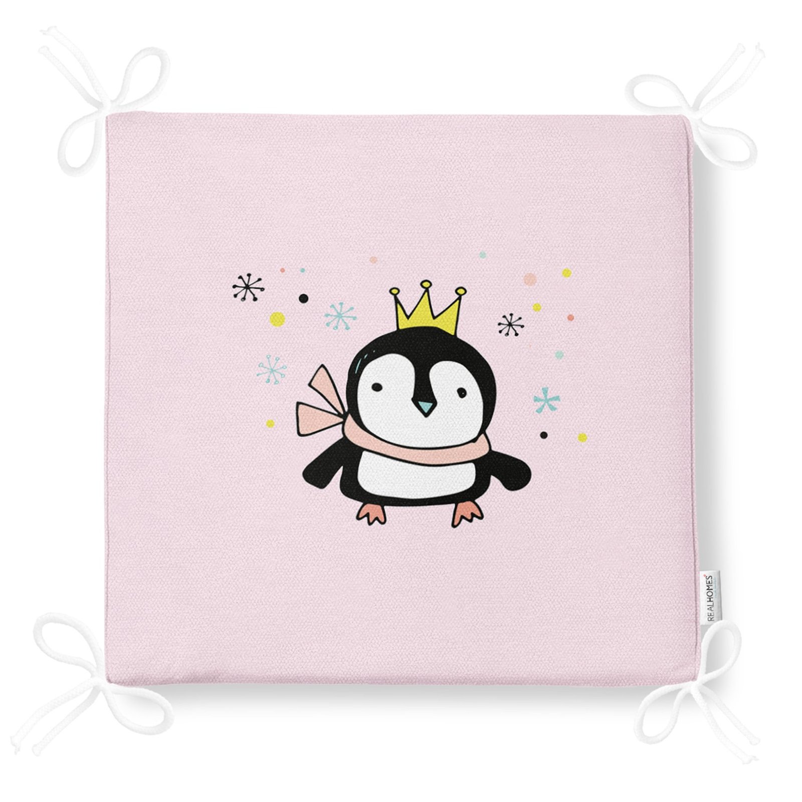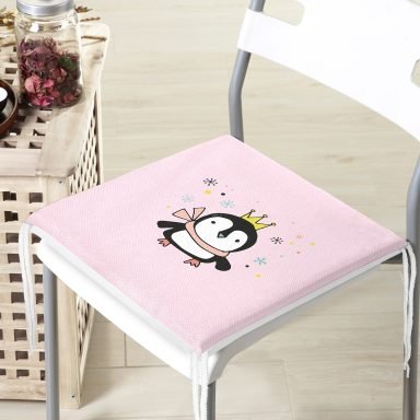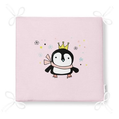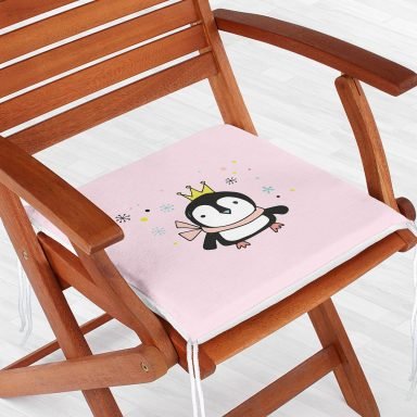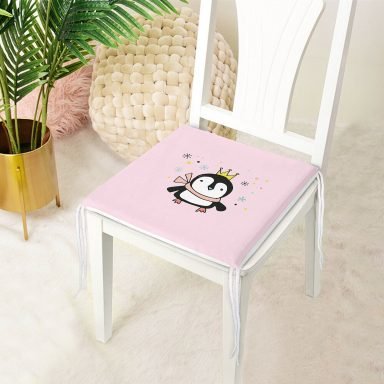 Gri Zeminli Uçan Sevimli Penguen Tasarımlı Bebek Odası Fermuarlı Sandalye Minderi