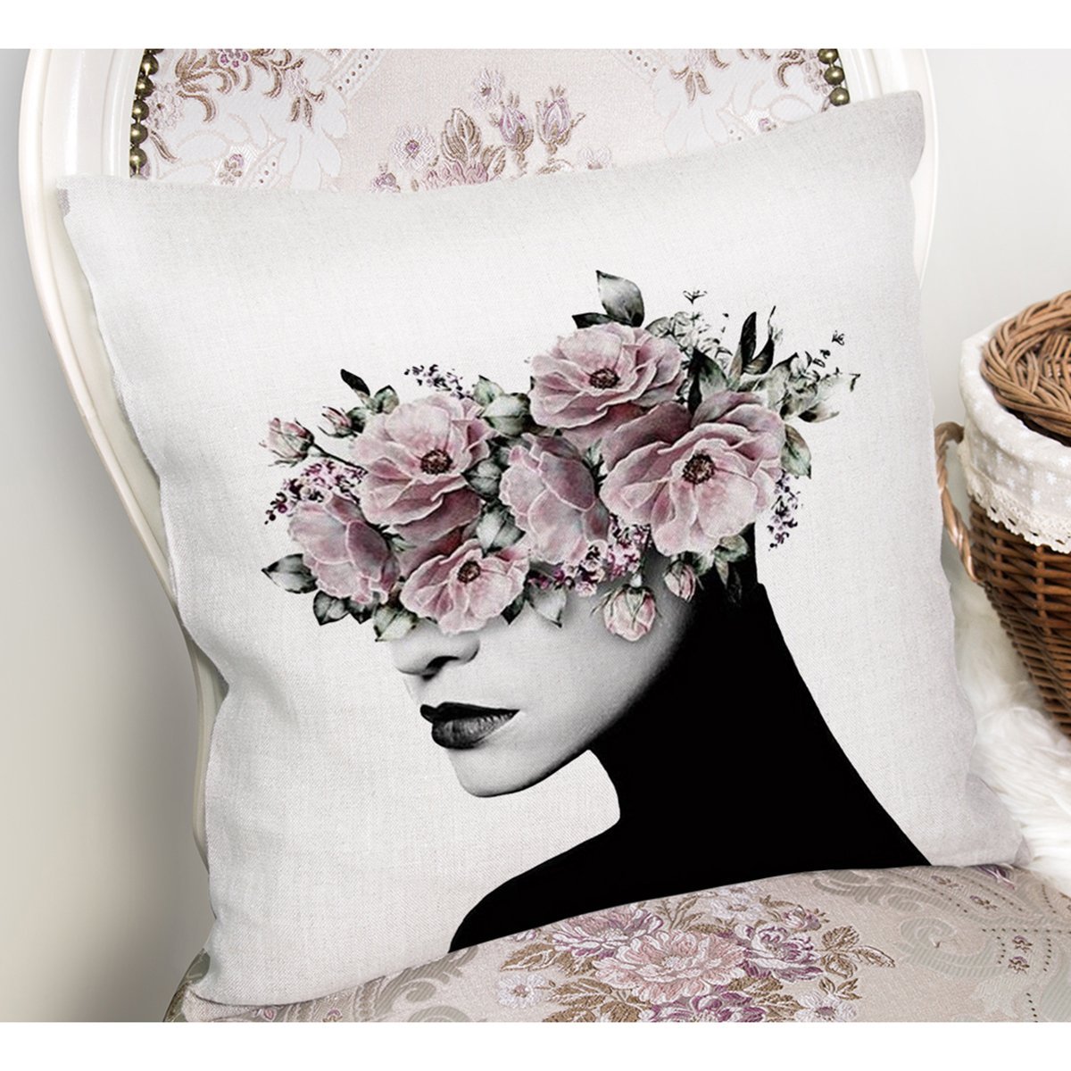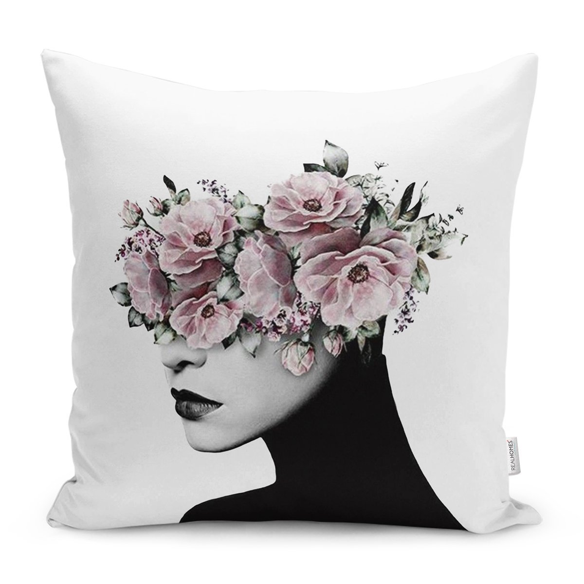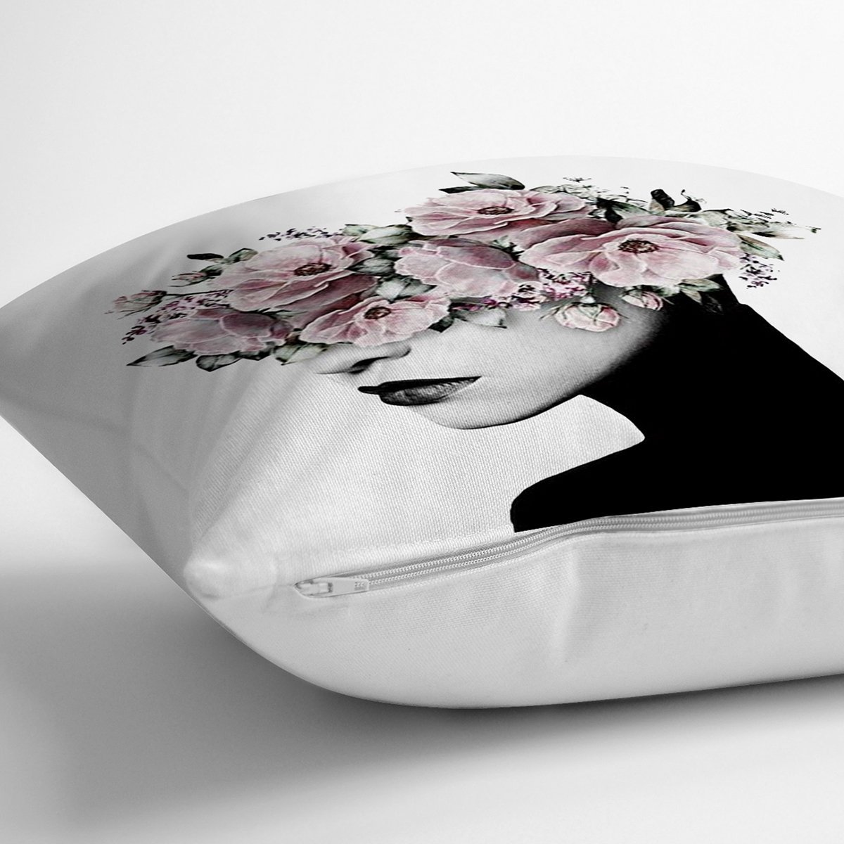 Gül Temalı Kadın Figürlü Özel Tasarım Yastık Kırlent Kılıfı