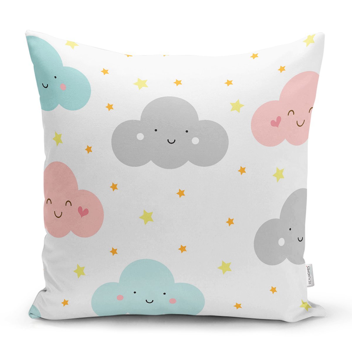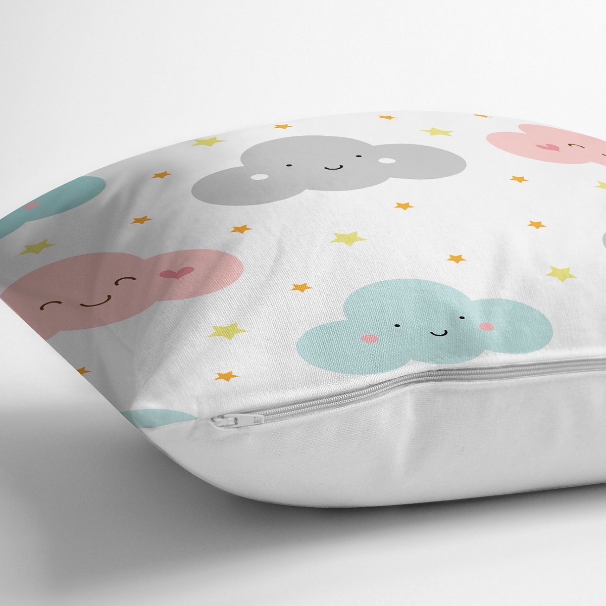 Gülümseyen Bulut Temalı Dijital Baskılı Özel Tasarım Modern Yastık Kırlent Kılıfı