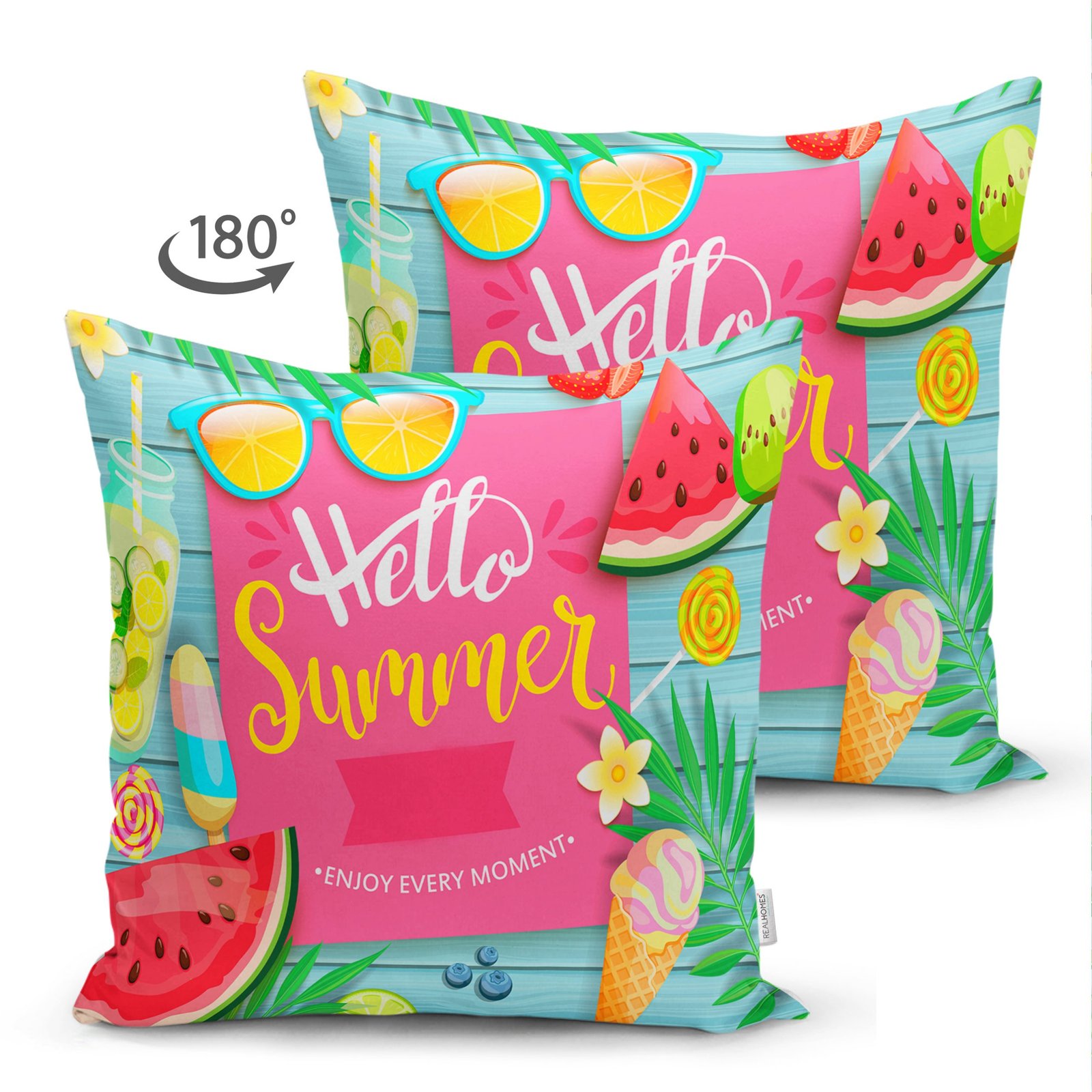 Hello Summer Özel Tasarımlı Modern Dijital Süet Yastık Kırlent Kılıfı