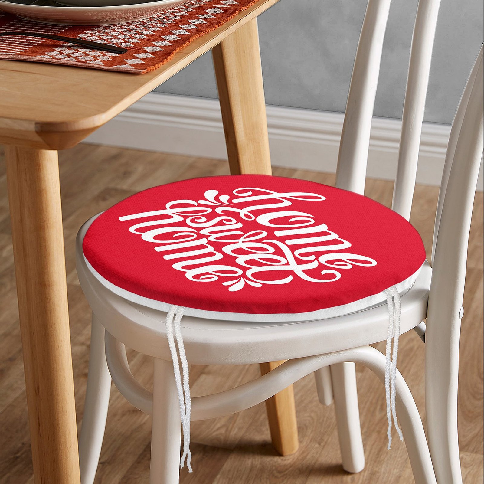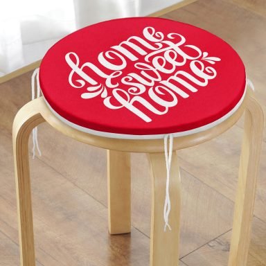 Home Sweet Home Dijital Baskılı Yuvarlak Fermuarlı Sandalye Minderi