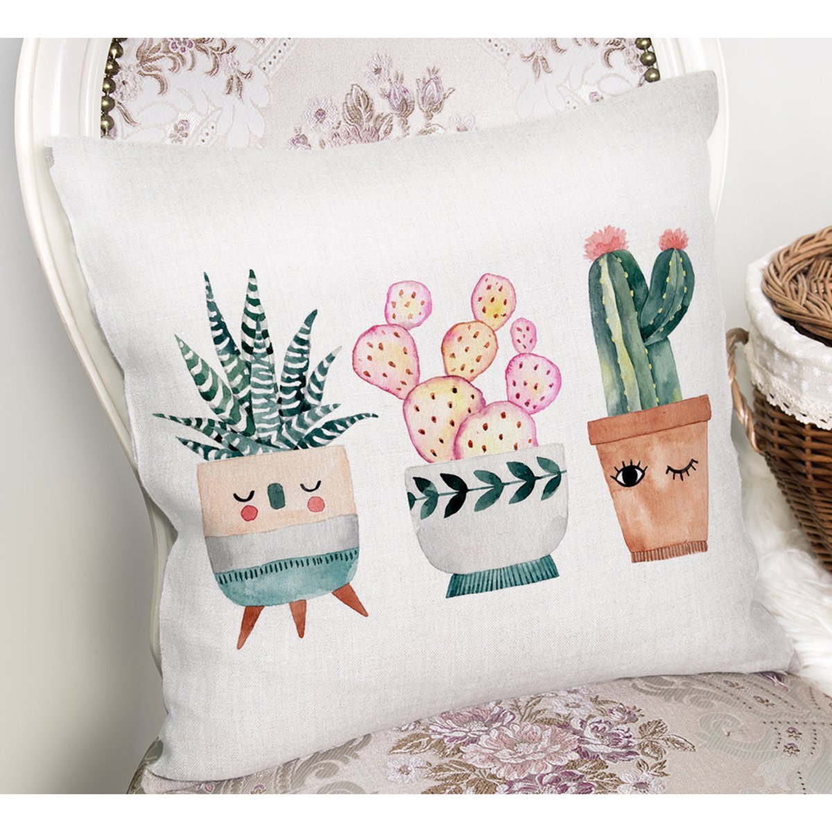 Kaktüs Motifli Dijital Baskılı Dekotarif Yastık Kırlent Kılıfı