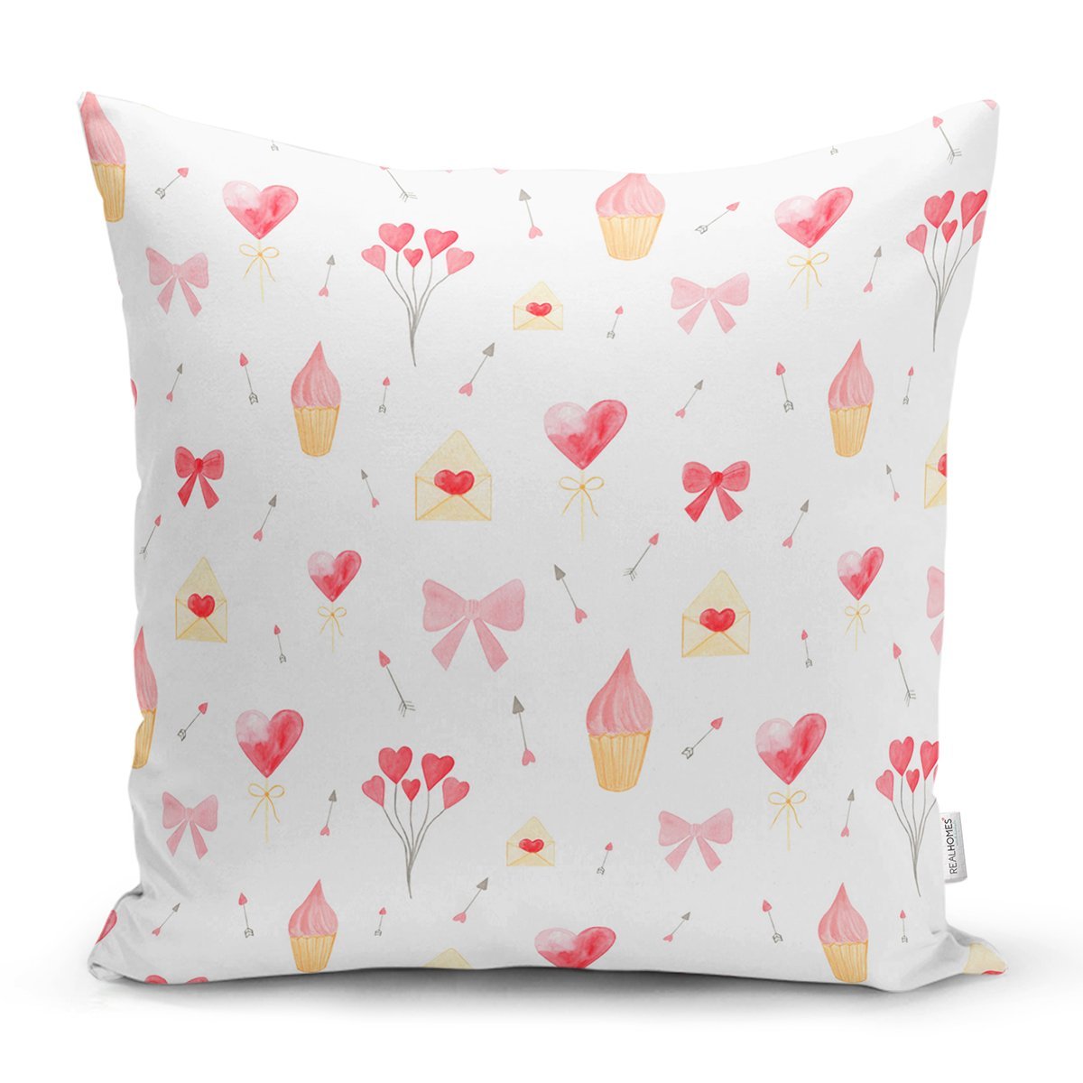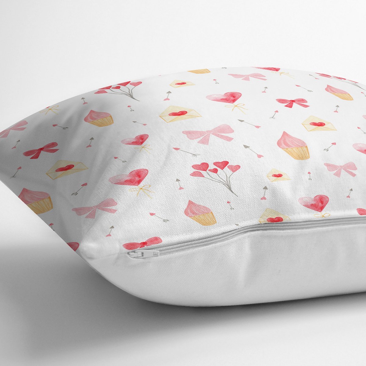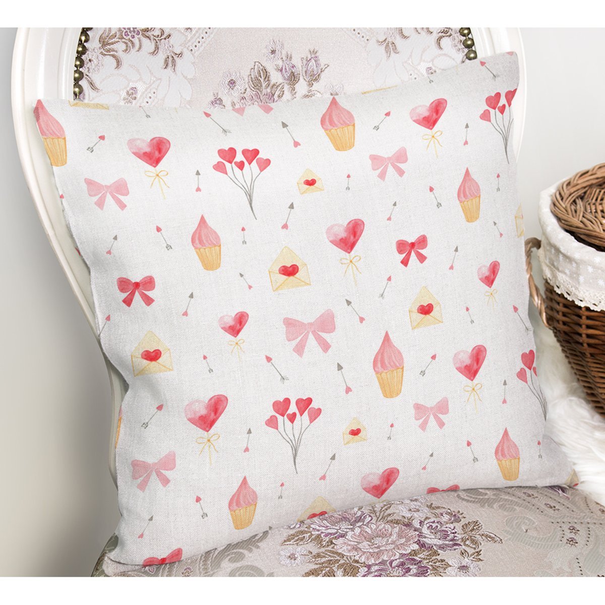 Kalp Motifli Dijital Baskılı Özel Tasarım Modern Yastık Kırlent Kılıfı