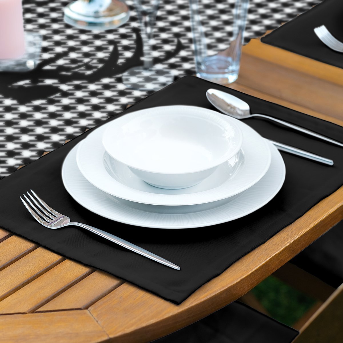 Kazayağı Zemin Geyik Tasarımlı Dekoratif 1 Adet Runner & 4 Adet Yeşil Renkli Amerikan Servis