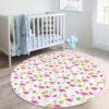 Kelebek Çizimli Çocuk & Genç Odası Makinede Yıkanabilir Kaymaz Tabanlı Yuvarlak Kadife Halı