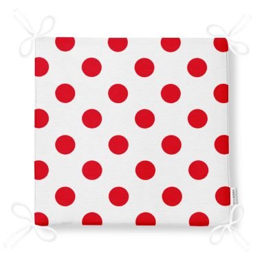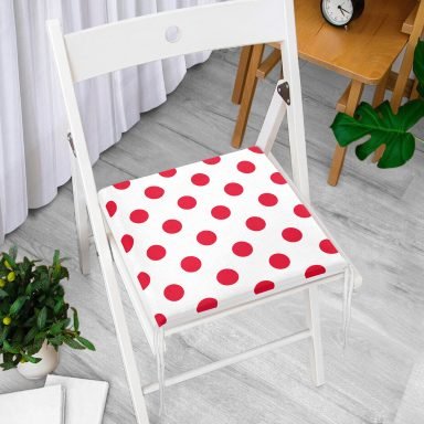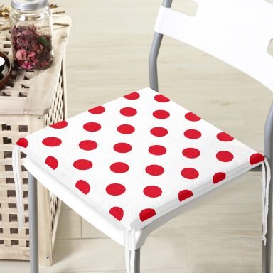 Kırmızı Puantiyeli Dijital Baskılı Fermuarlı Sandalye Minderi