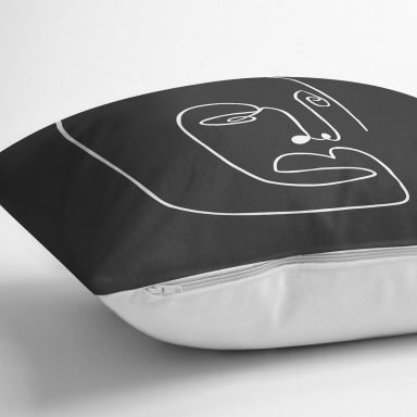 Koyu Gri One Line Çizimli Dijital Baskılı Yastık Kırlent Kılıfı