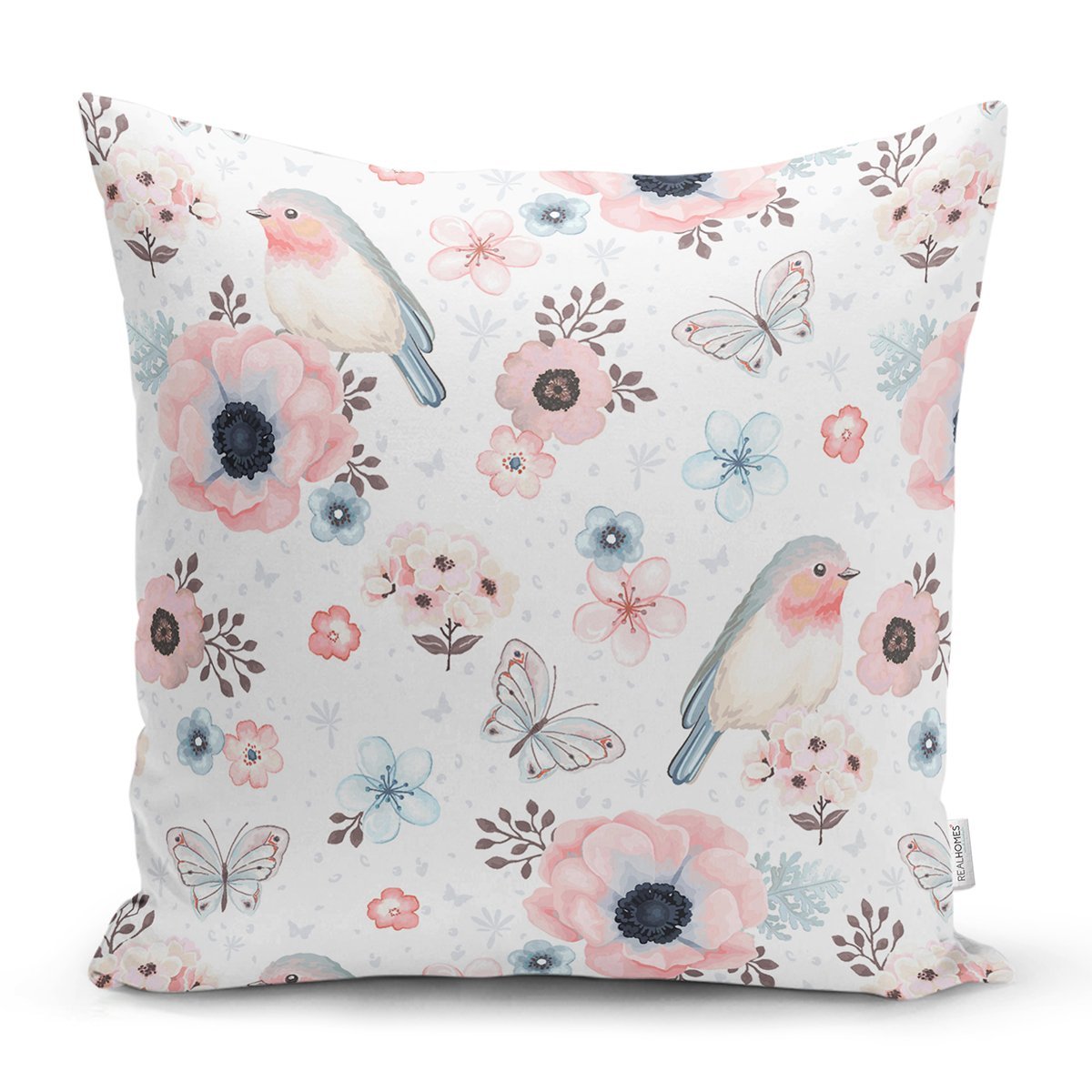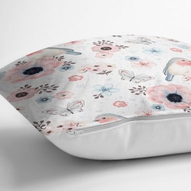 Kuş Ve Çiçek Desenli Dijital Baskılı Özel Tasarım Modern Yastık Kırlent Kılıfı