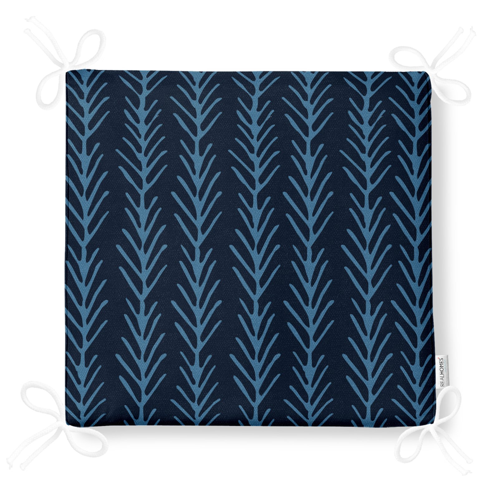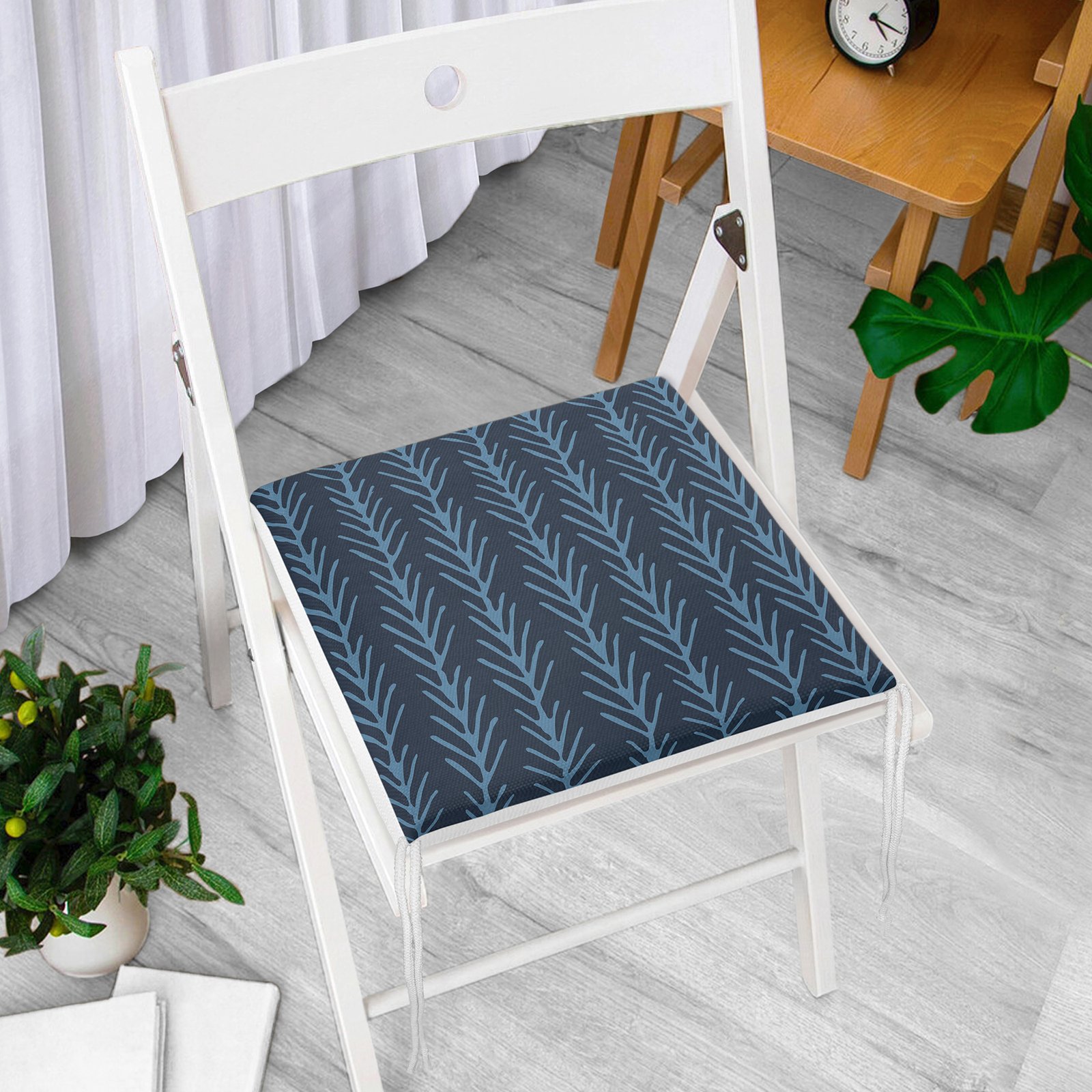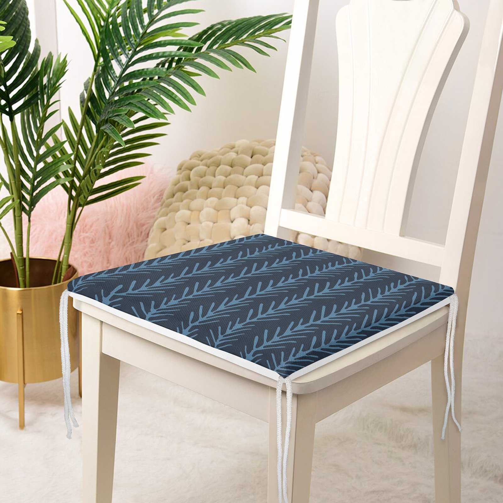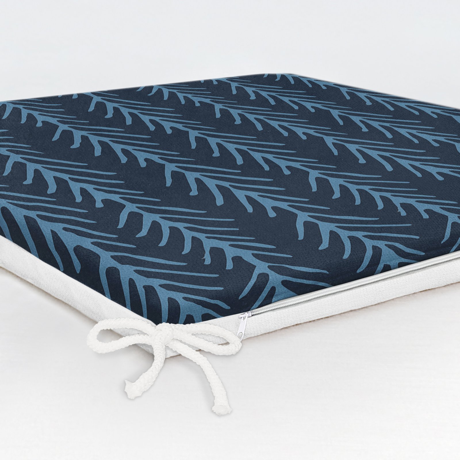 Lacivert Mavi Ebru Sanatı Dijital Baskılı Modern Fermuarlı Sandalye Minderi