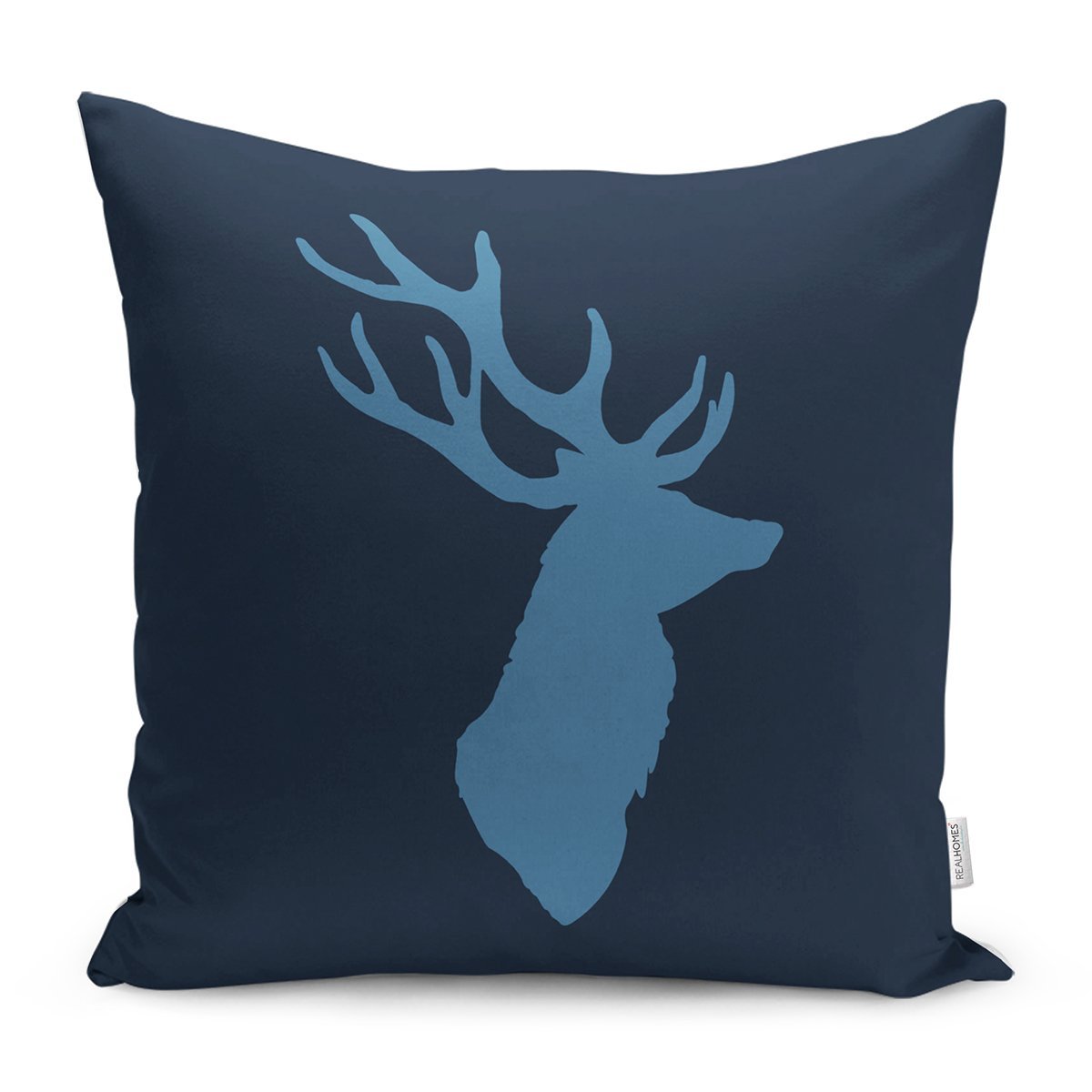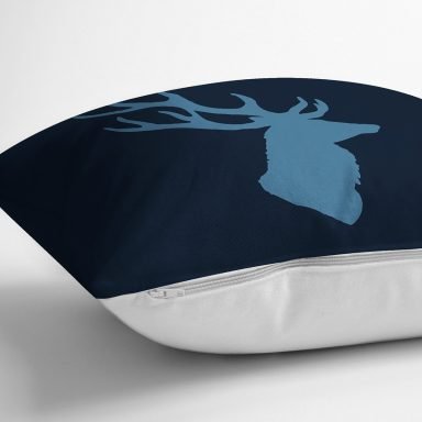 Lacivert Zemin Mavi Geyik Tasarımlı Modern Yastık Kırlent Kılıfı