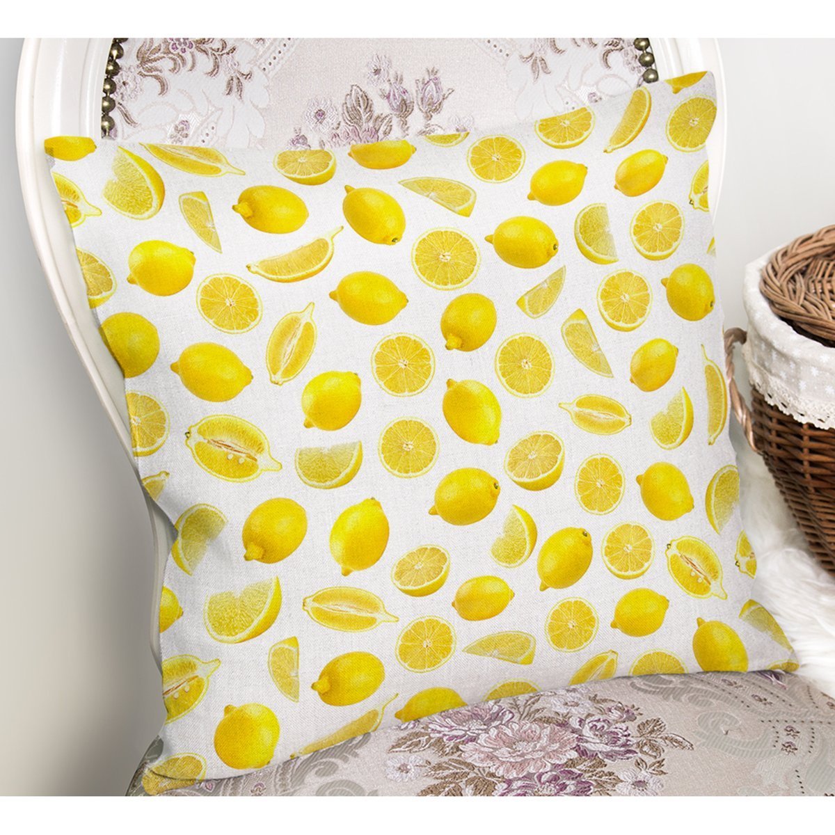 Limon Desenli 3D Dijital Baskılı Dekoratif Yastık Kırlent Kılıfı