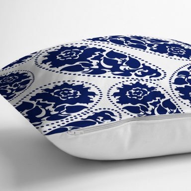 Mavi Çini Motifli Gül Tasarımlı Yastık Kırlent Kılıfı