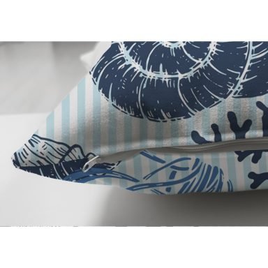 Mavi Deniz Canlıları Temalı Dijital Baskılı Modern Süet Yastık Kırlent Kılıfı