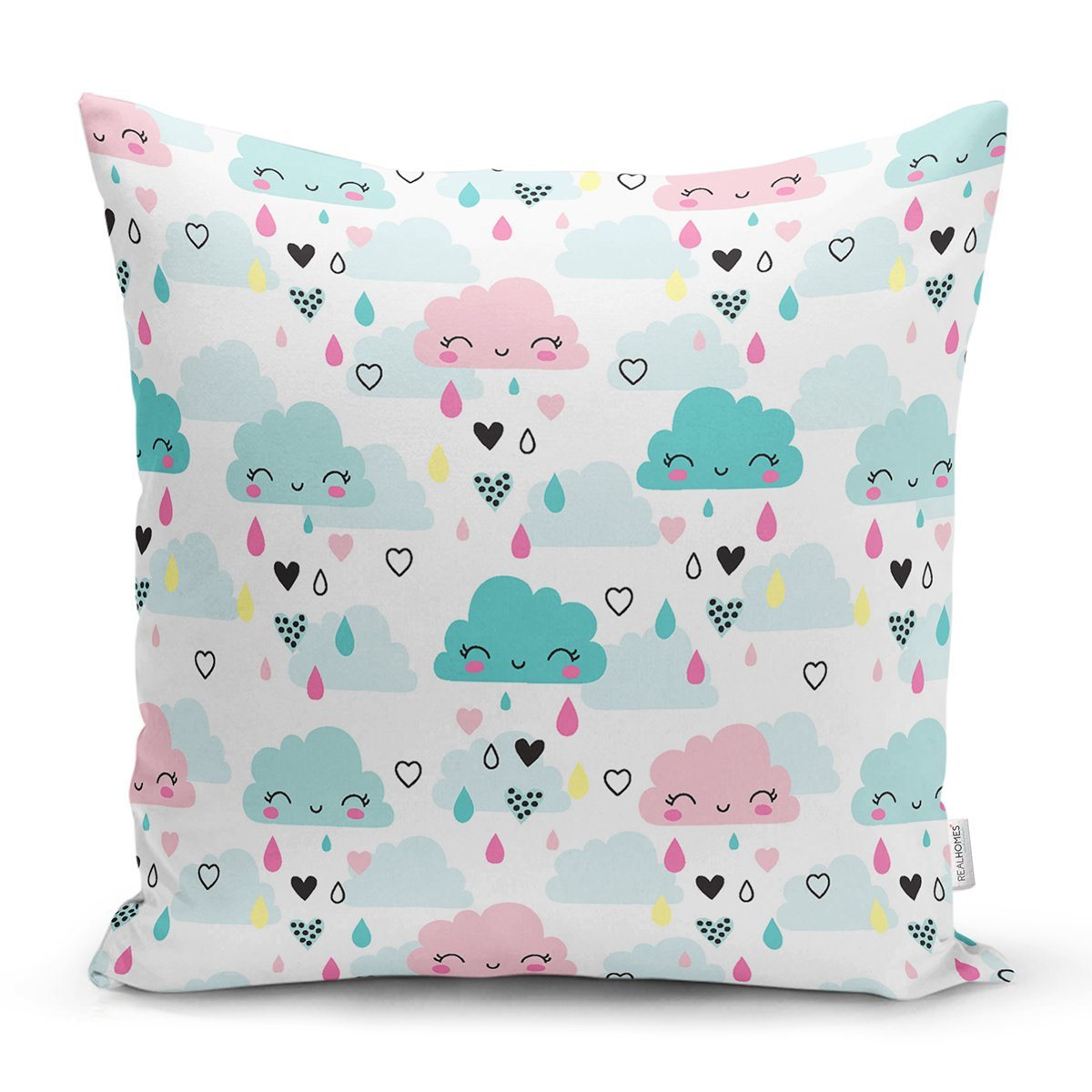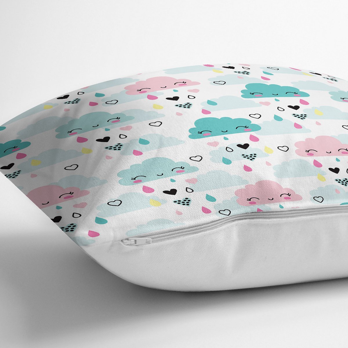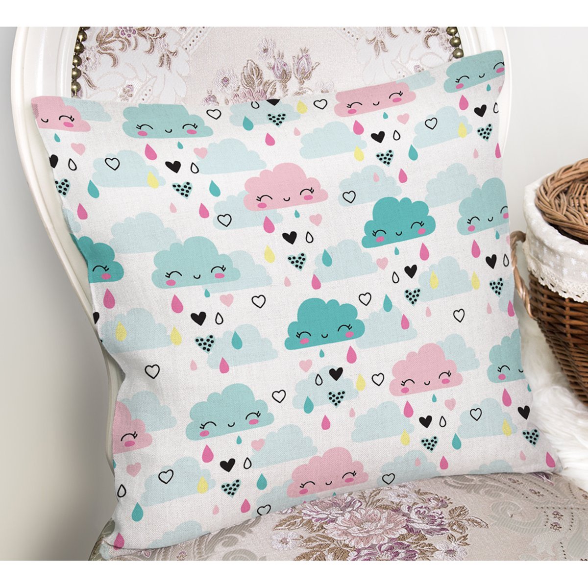 Mavi Pembe Yağmur Bulutları Desenli Dijital Baskılı Özel Tasarım Modern Yastık Kırlent Kılıfı