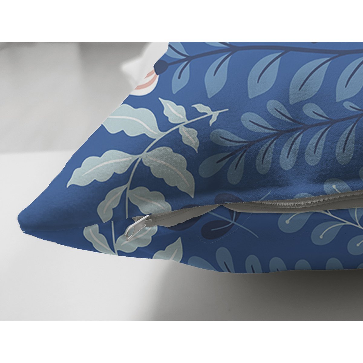 Mavi Zemin Kelebek & Çiçekli Özel Tasarım Dijital Baskılı Modern Süet Yastık Kırlent Kılıfı