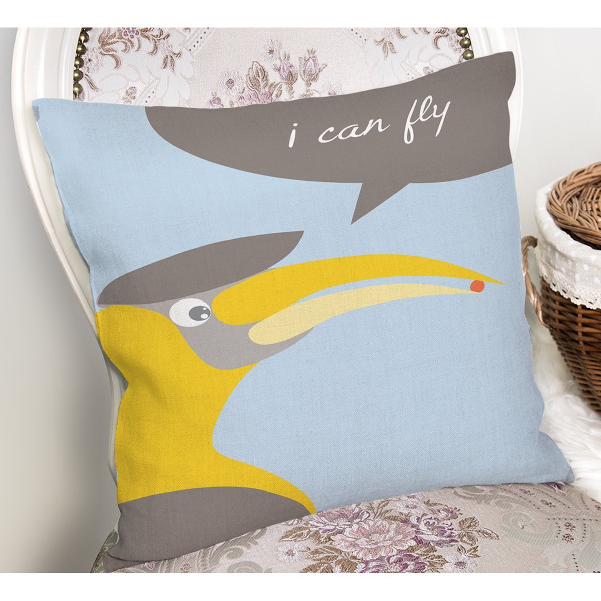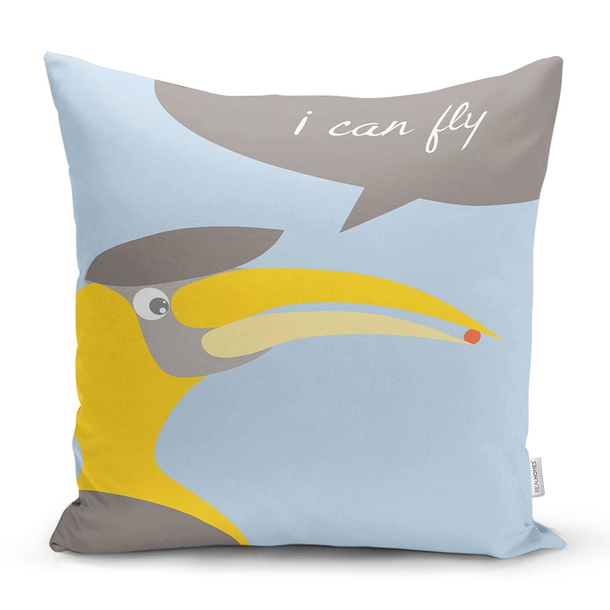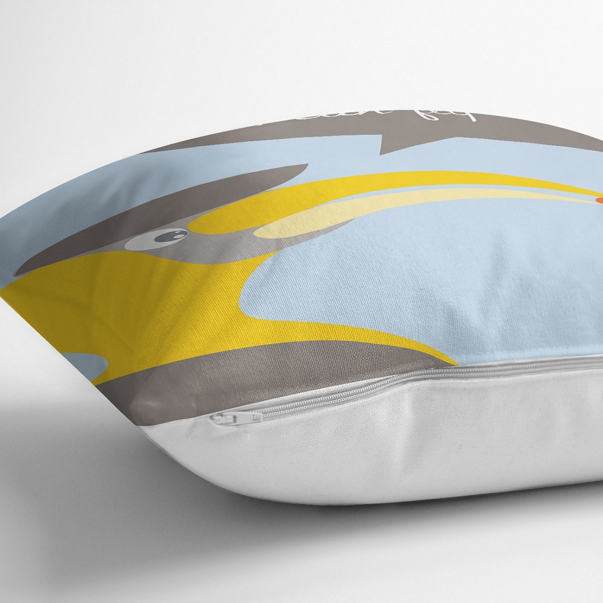 Mavi Zeminde I Can Fly Leylek Motifli Bebek Odası Yastık Kırlent Kılıfı