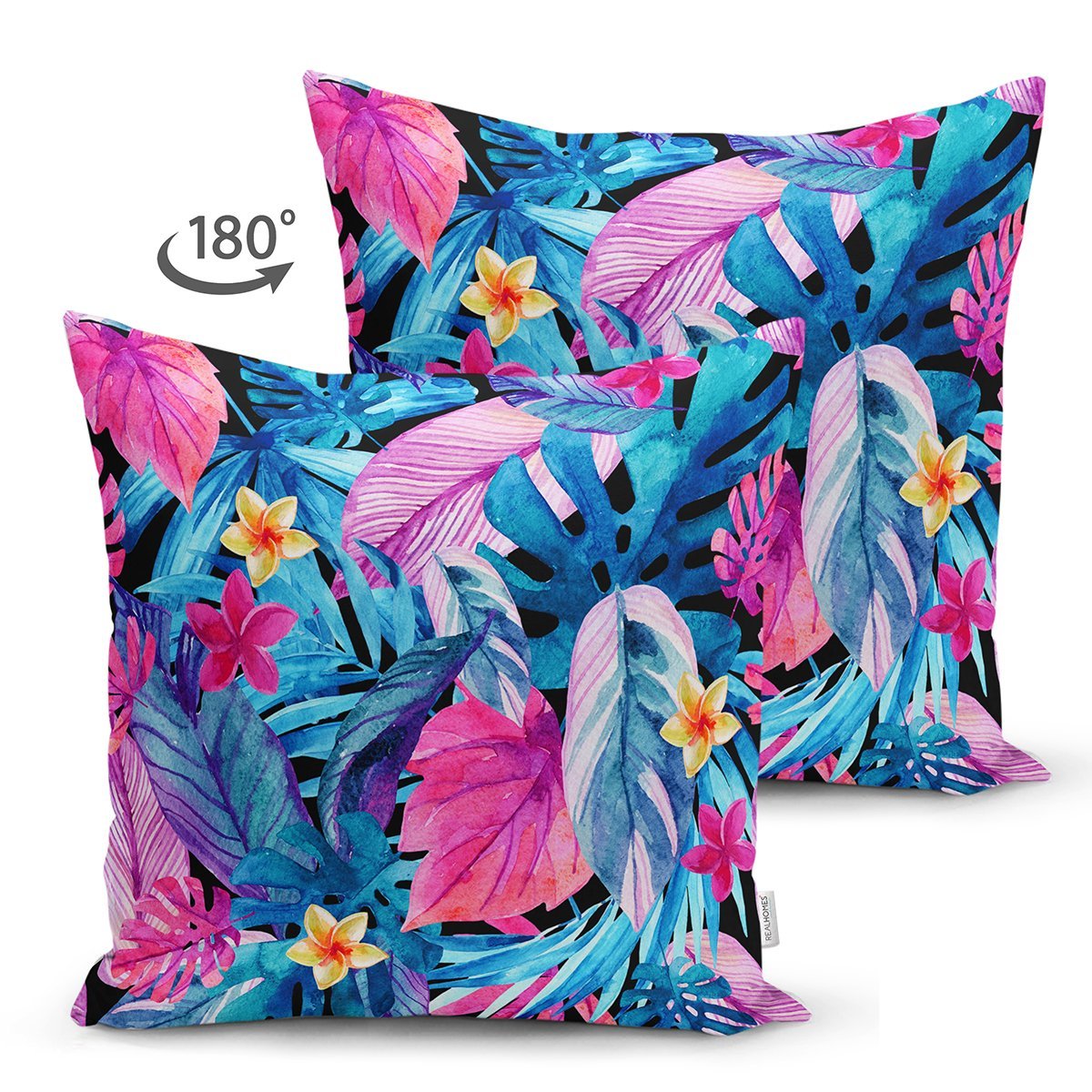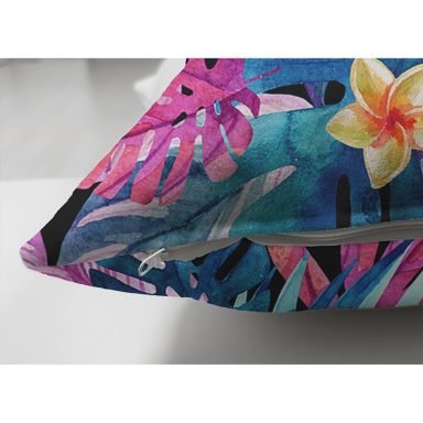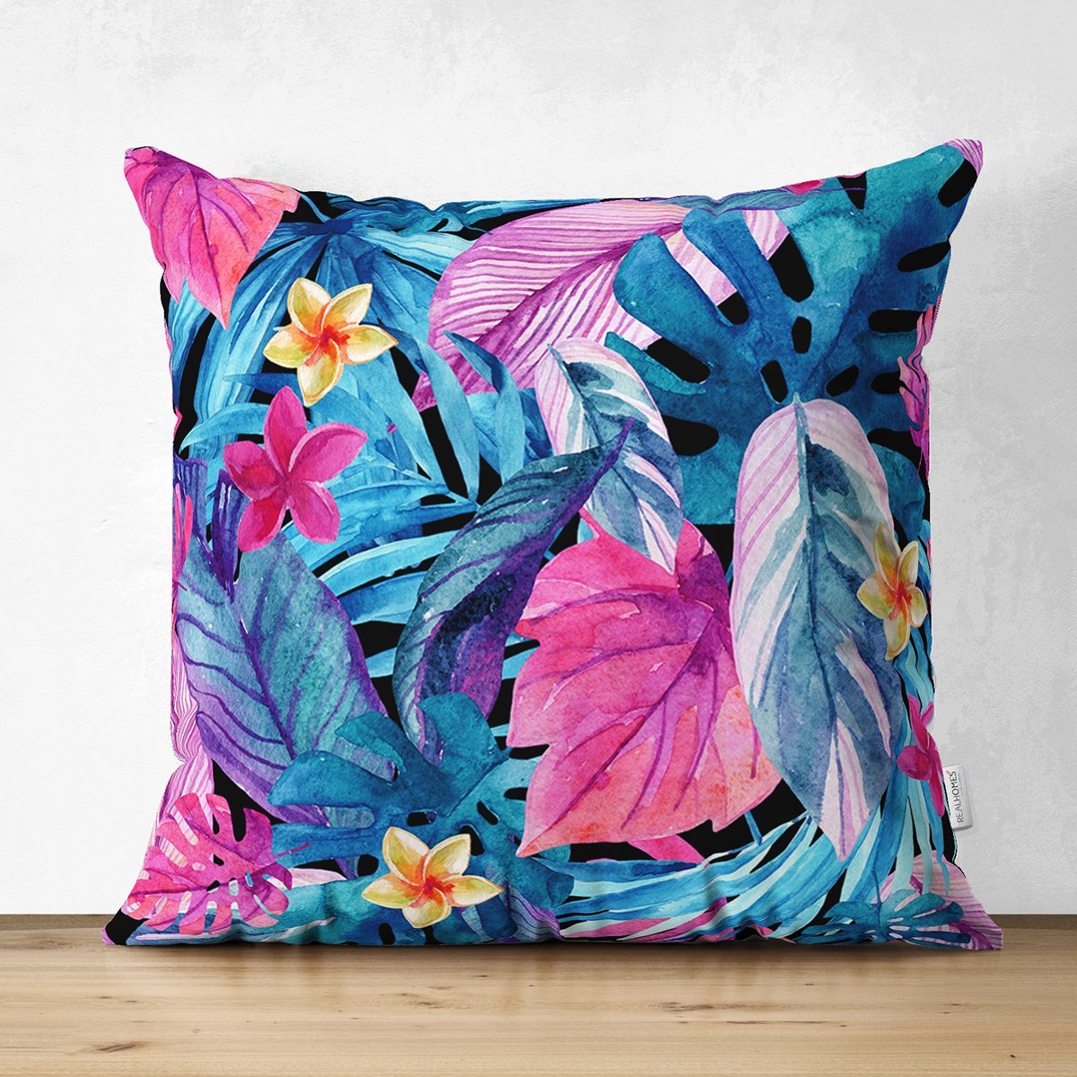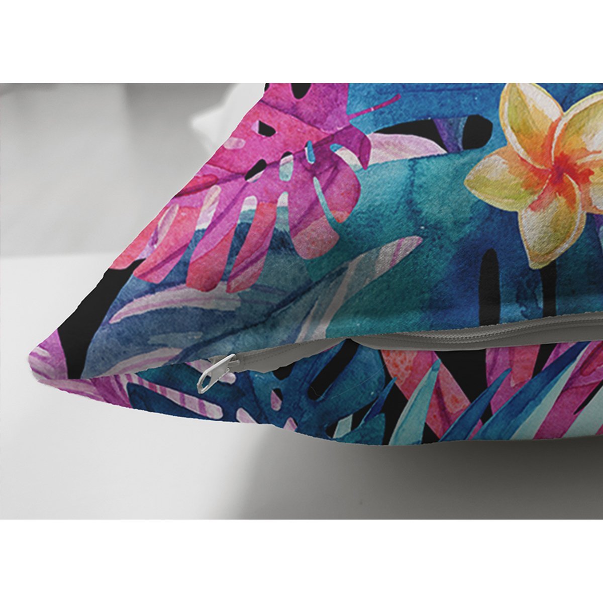 Mavi Zeminde Rengarenk Çiçekler Modern Süet Yastık Kırlent Kılıfı