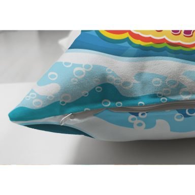 Mavi Zeminde Summer Motifli Dijital Baskılı Modern Süet Yastık Kırlent Kılıfı