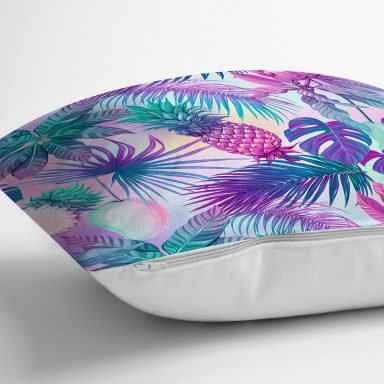 Mavi Zeminde Tropikal Objeler Modern Yastık Kırlent Kılıfı