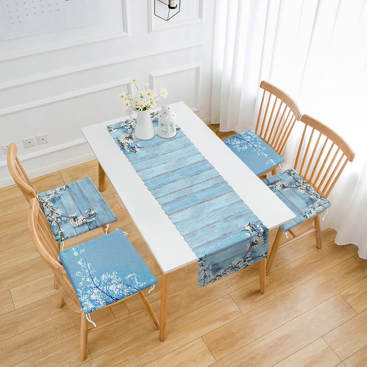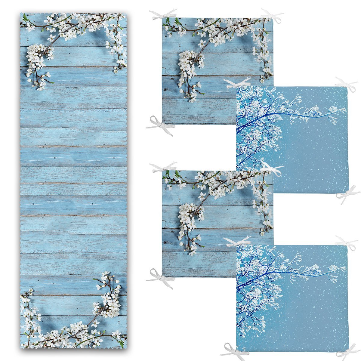 Mavinin Uyumu Tasarımlı 4 Fermuarlı Sandalye Minderi ve 1 Runner Seti