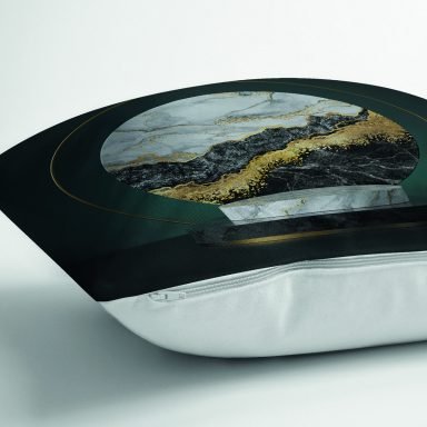 Mermer Ve Altınlı 3D Daire Desenli Dijital Baskılı Dekoratif Yastık Kırlent Kılıfı