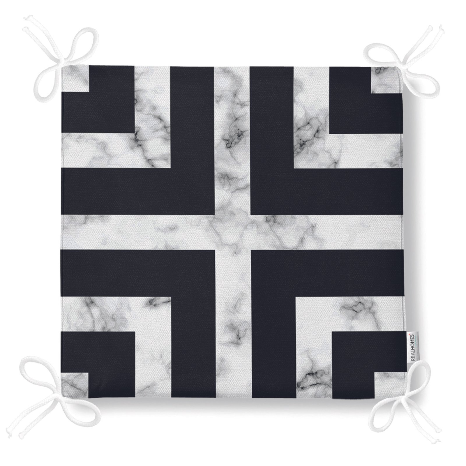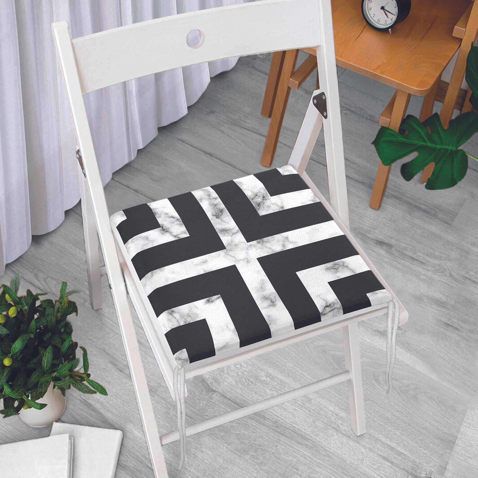 Mermer Zeminli Siyah Geometrik Desenli Modern Fermuarlı Sandalye Minderi