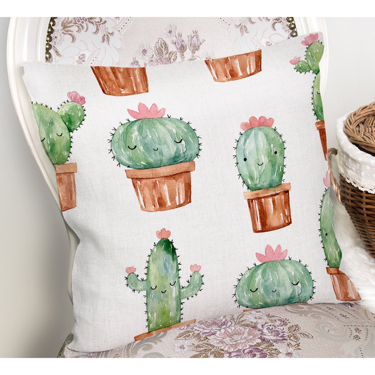 Minimal Kaktüs Tasarımlı Yastık Kırlent Kılıfı